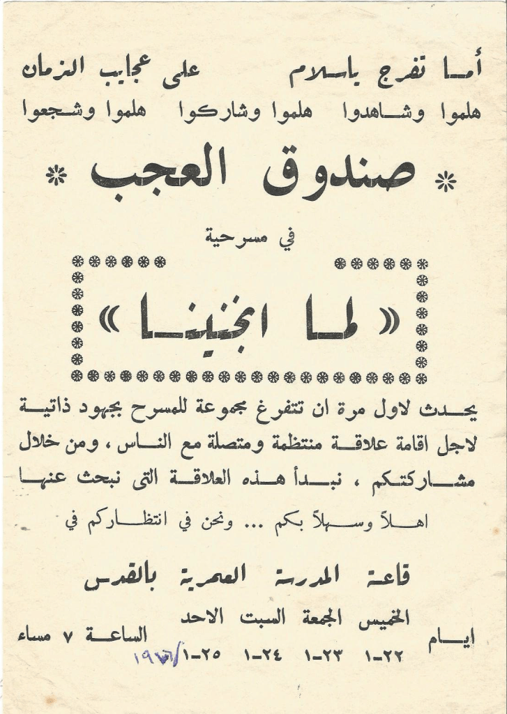 على اليسار: صورة لإعلان لمسرحية لما انجنينا، ۱۹۷٦