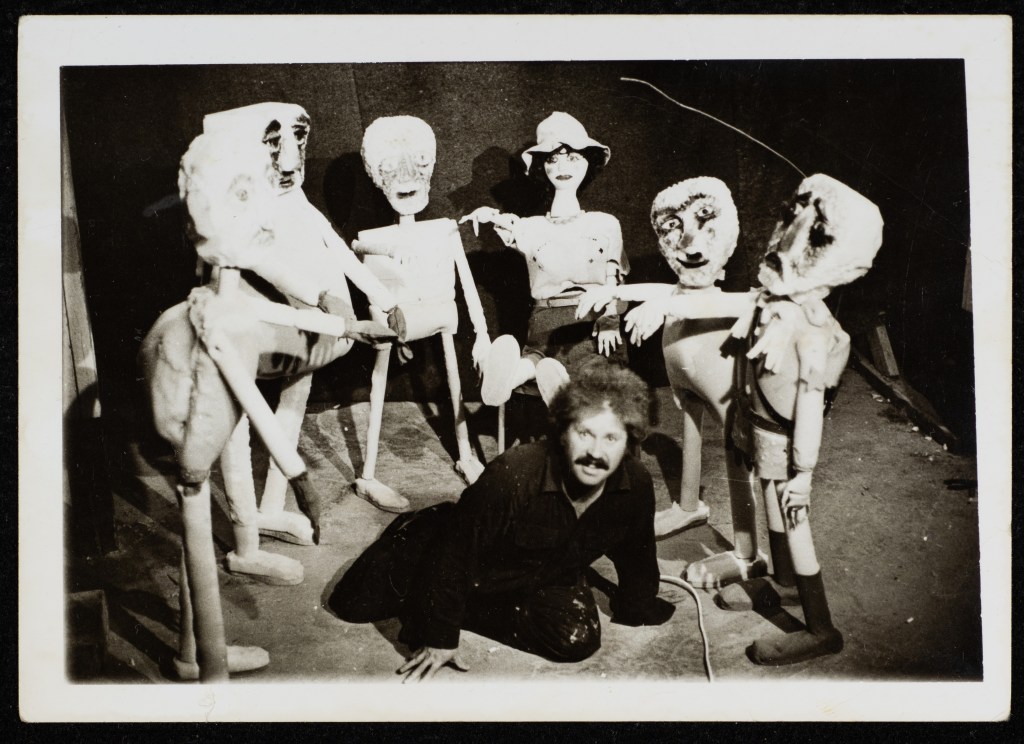 خلال البروفات كانت تتطور الشخصيات، ومن خلال الارتجالات ينضج العمل. كان الشغل في نهاية ۱۹۷۹ واشتغلت لشهر حزيران عام ۱۹۸۰. بعد انجازي للعمل كان في موعد مع سرية رام الله لأقدم عرض الافتتاح. قبل الموعد انزنقت في الوقت. دمى غير تقليدية من اسفنج وبقايا الأشياء وأسلاك لتجسد بأحجام كبيرة كما البني آدم. أبو كرش كان كتير ضخم وصار الوقت يداهمني فحولت البيت لورشة كبيرة كبيرة مليانة اسفنج وقماش وخيطان وين مكان، ولما كنت اطلع من البيت وارجع كنت انقز واحس انو حدا عايش معاي. الشخوص والدمى بقوا معي لفترة طويلة. خليتهم في البيت عشان احافظ عليهم لأنه فش مخازن فكنت أنام بجنب الدمى. مع موعد عرض الافتتاح أخدنا خشبة مسرح متنقلة ونصبناها في ملعب الباسكت الكبير (ملعب مفتوح) ومساحة كبيرة جدا، وبنينا المسرح وبلشت اخد الشخوص وحدة وحدة من البيت وحملناهم على العرض. ولكن تفاجئت بأكثر من 1500 شخص في الملعب، ولضيق الوقت ما عملت بروفا نهائية قبل العرض. ففعليا العرض الافتتاحي كان البروفا النهائية، والجمهور بقي في تزايد وكنت لحالي لحالي على المسرح، والعرض في الهواء الطلق والجمهور التصق في المسرح، ومع الهوا وعدد الناس والمسرح المتحرك (مش ثابت)، الدمى صارت توقع مرات، وأنا فعليا ما بدي إياها توقع، فكنت ارتجل شيء حول وقوع هذه الشخصية – مثلا انفّش وأصرخ فيها – فكنت في حالة ارتجال دائم. مثلاً، الدان ما قبلت تلزق، فقلت “الدان اللي بجيك منها الريح، اخلعها واستريح”. المشنقة معلقة، فحملت الجندي للشنق بس المشنقة طلعت كتير عالية وأنا قصير، فالجمهور ناولني كرسي وعلقت الجندي