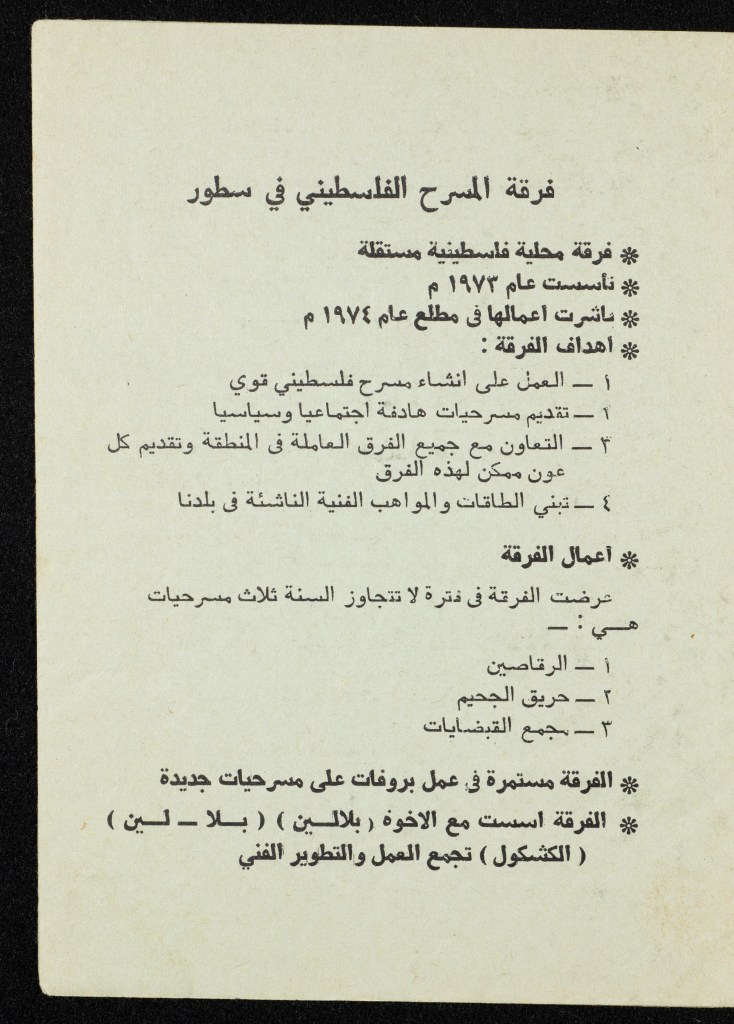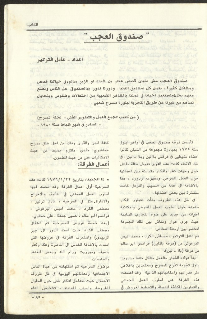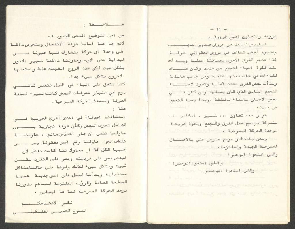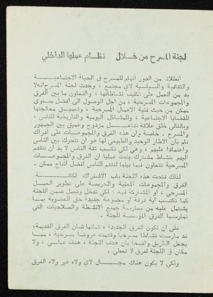 كتيب صادر عن تجمع العمل والتطوير الفني – لجنة المسرح، 1980