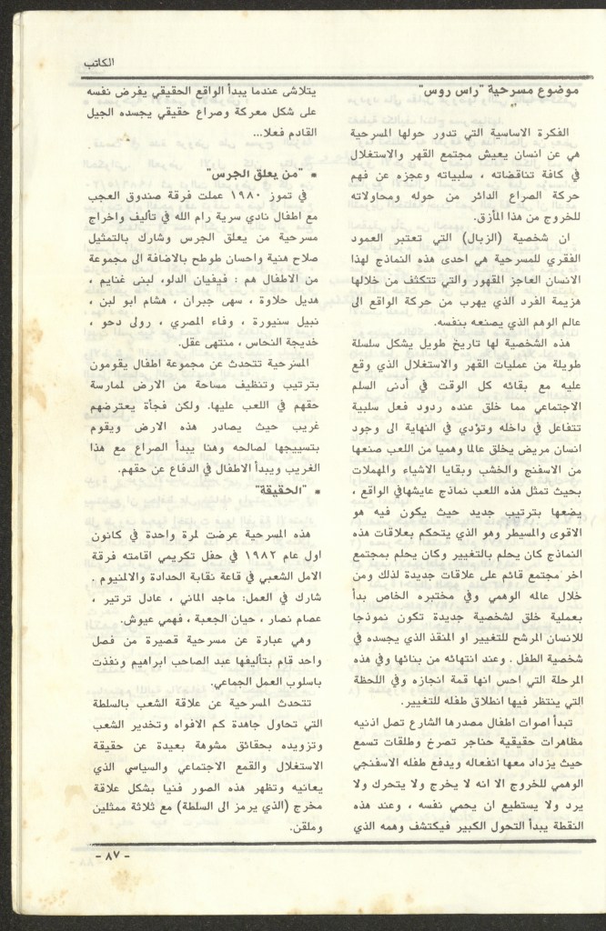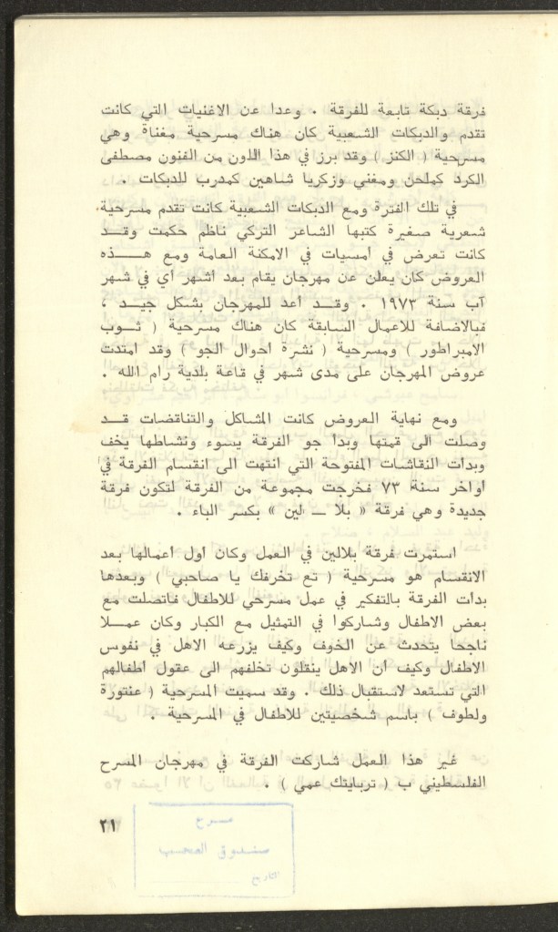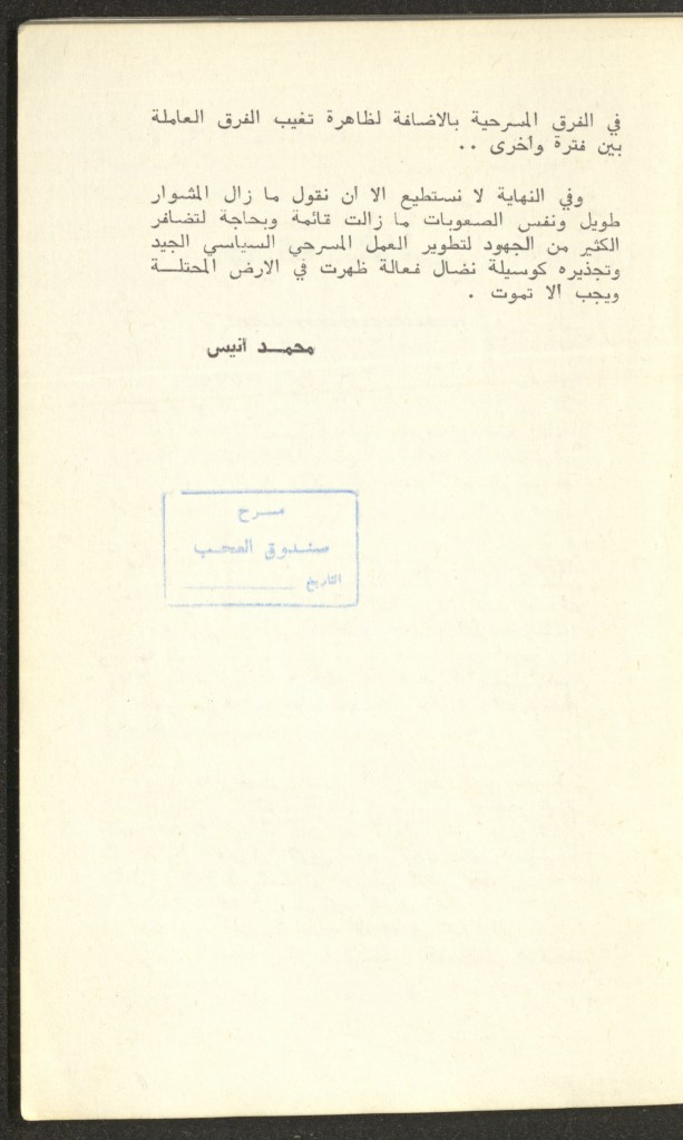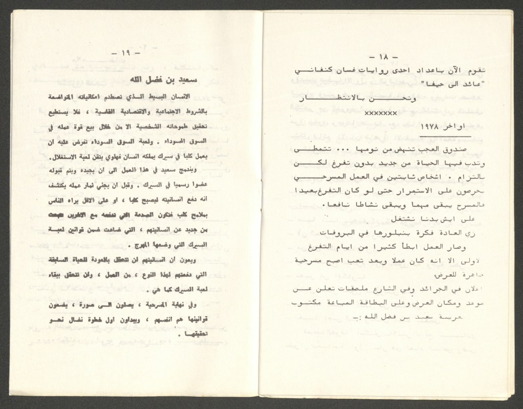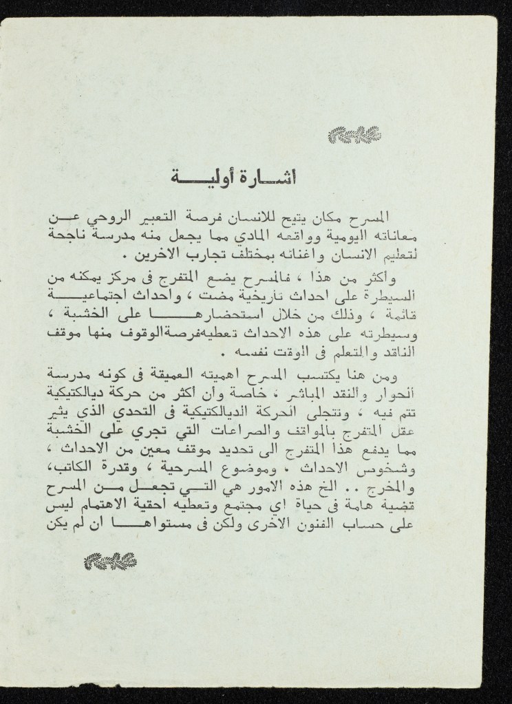 كتيب صادر عن تجمع العمل والتطوير الفني – لجنة المسرح، 1980