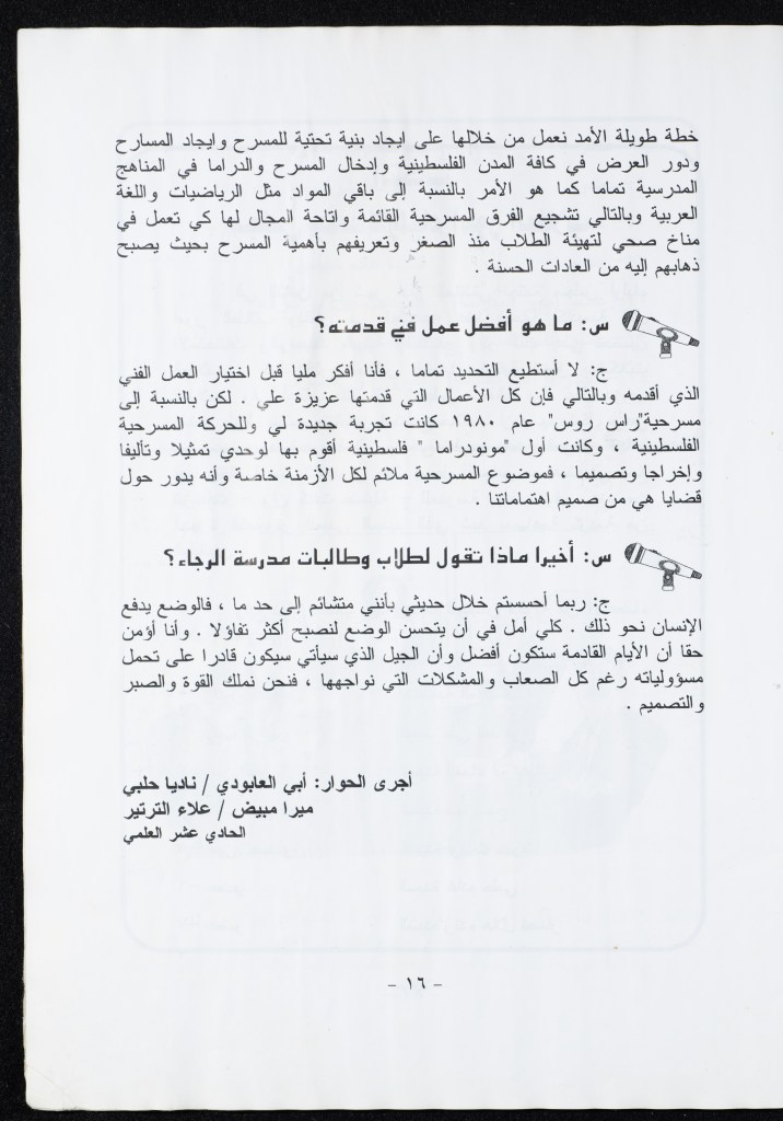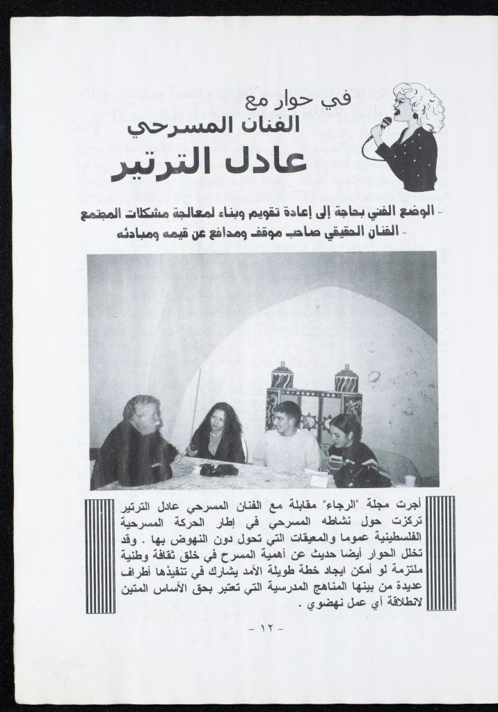 حواراً مع عادل الترتير حول نشاطه المسرحي – مجلة الرجاء، أيلول 2001