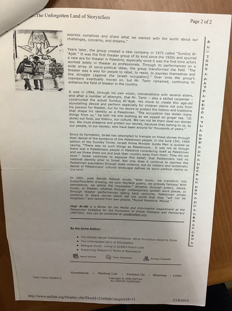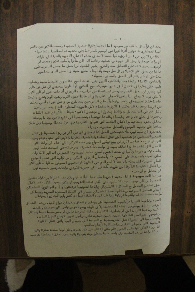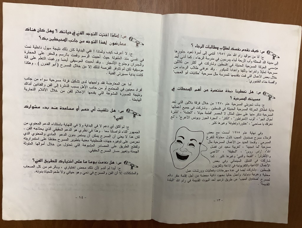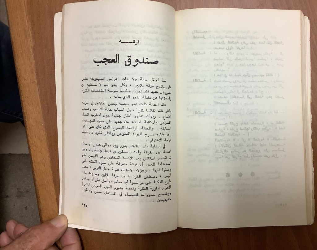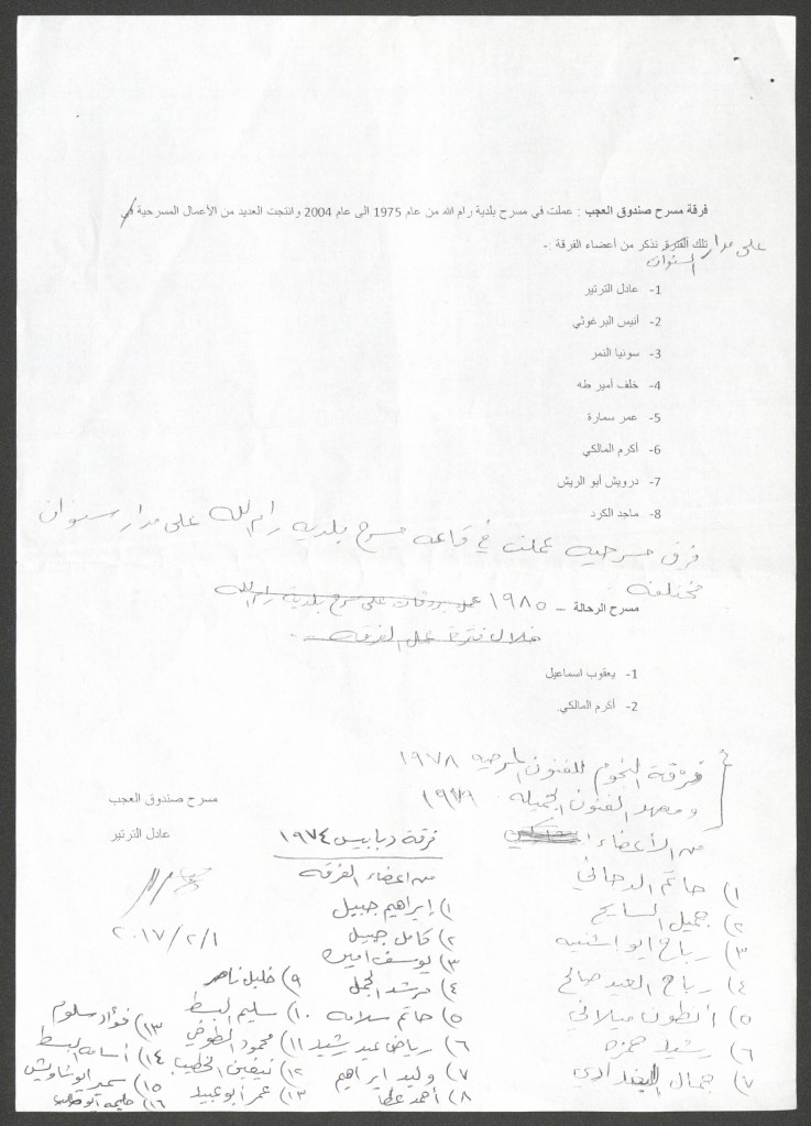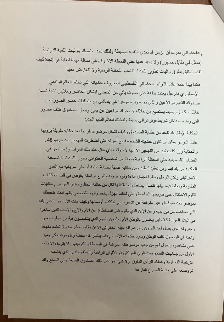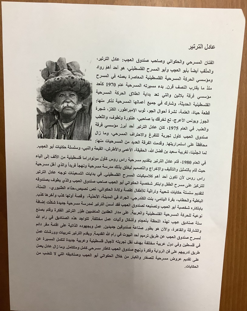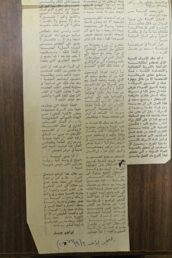 “واقع الحركة المسرحية في الأراضي المحتلة”، قصاصة من جريدة، 15 شباط 1980 مجموعة عادل الترتير 15 فبراير 1980 “صاحب آخر صندوق عجب في العالم”، قصاصة من جريدة، 6 تموز 2013