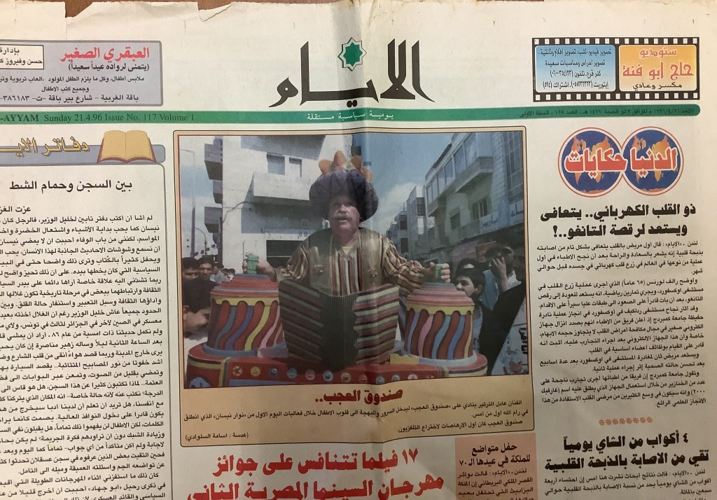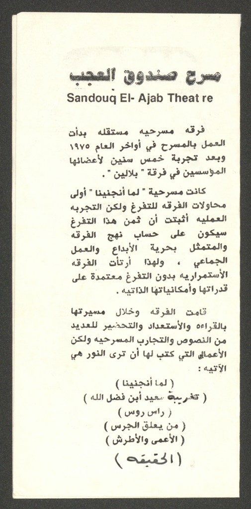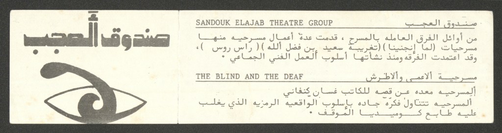 “صندوق العجب يقدم مسرحية الأعمى والاطرش”، قصاصة ورقية، 1986