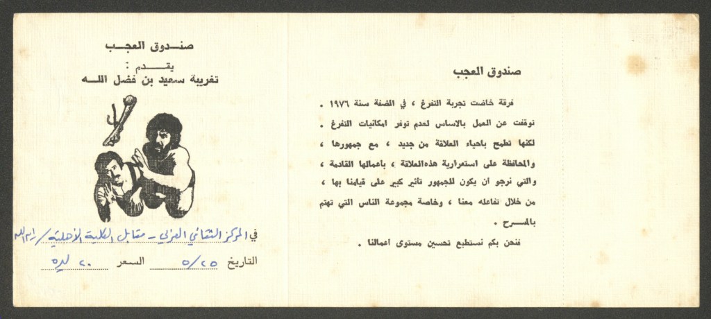 مسرحية “تغريبة سعيد ابن فضل الله”، ملصق صادر عن فرقة صندوق العجب، 1979-1981