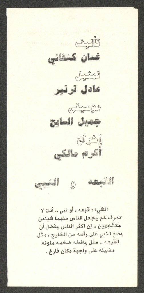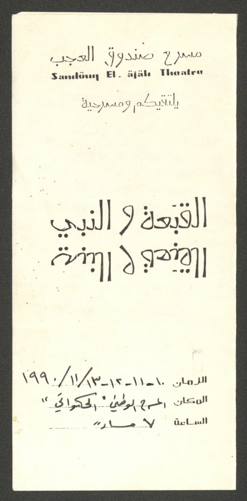 تذكرة الدخول لمسرحية “القبعة والنبي”، القدس، 1990