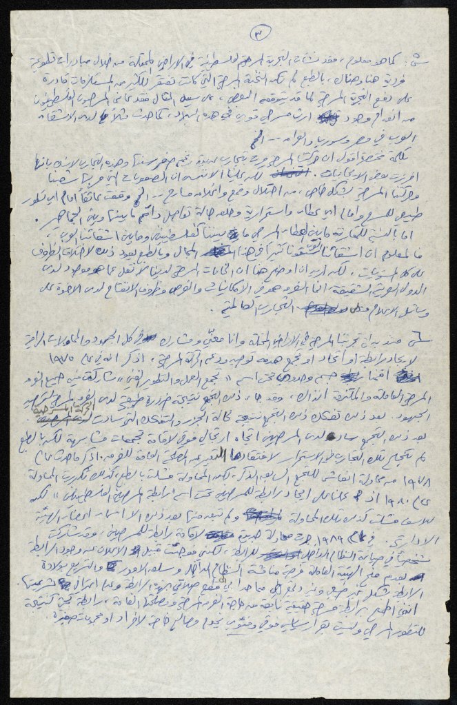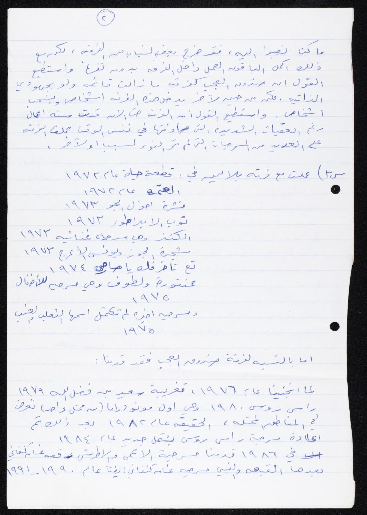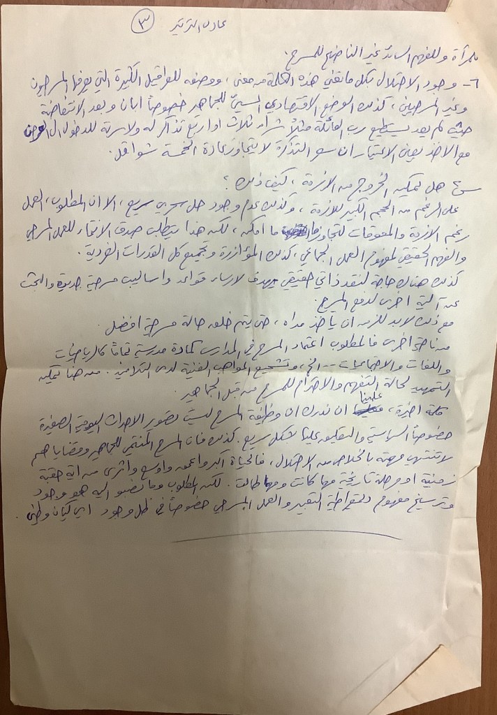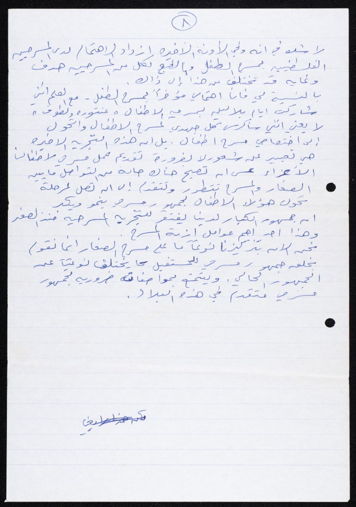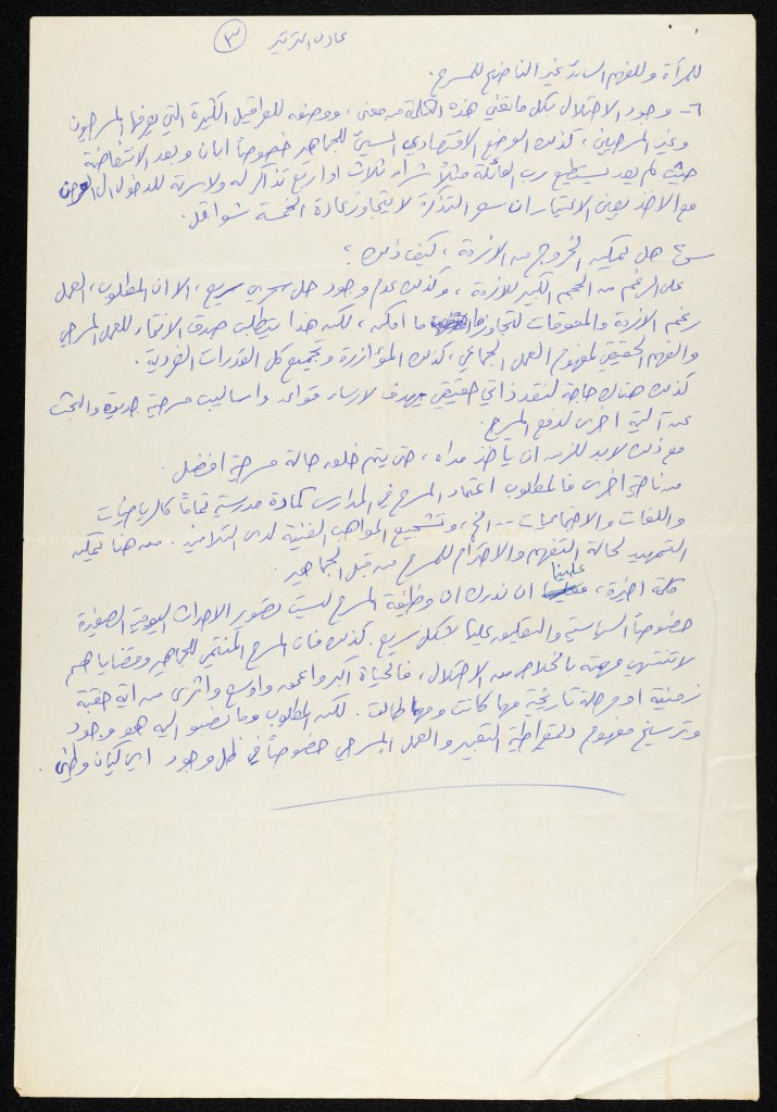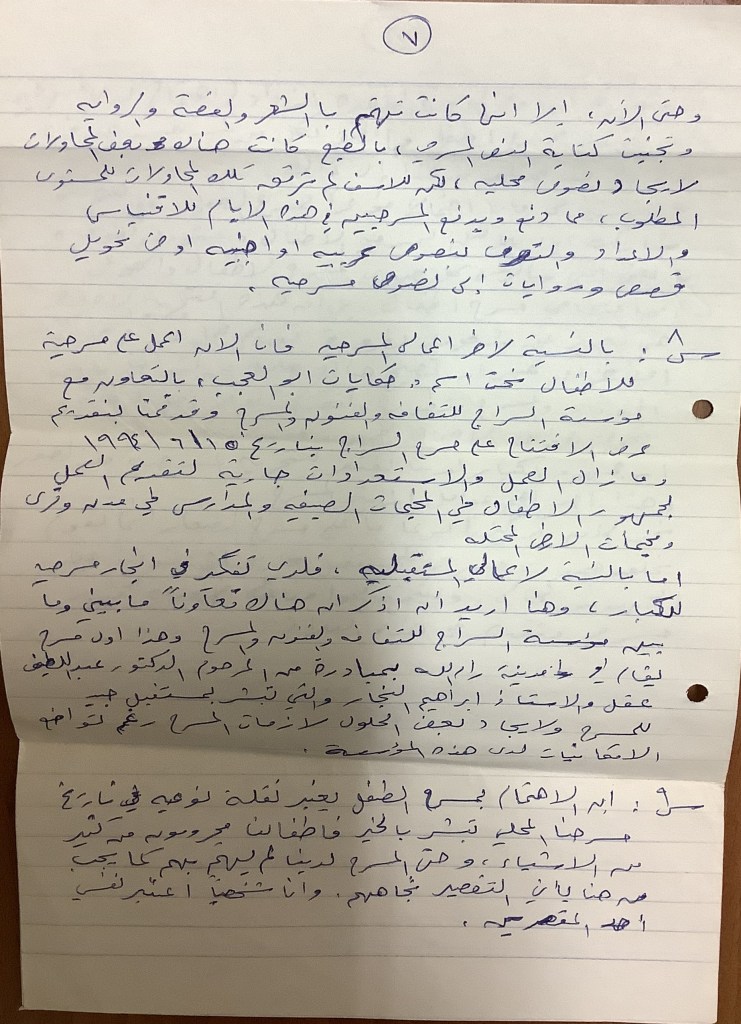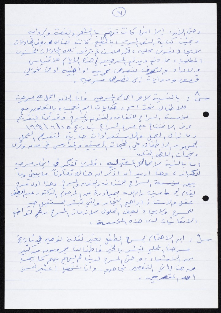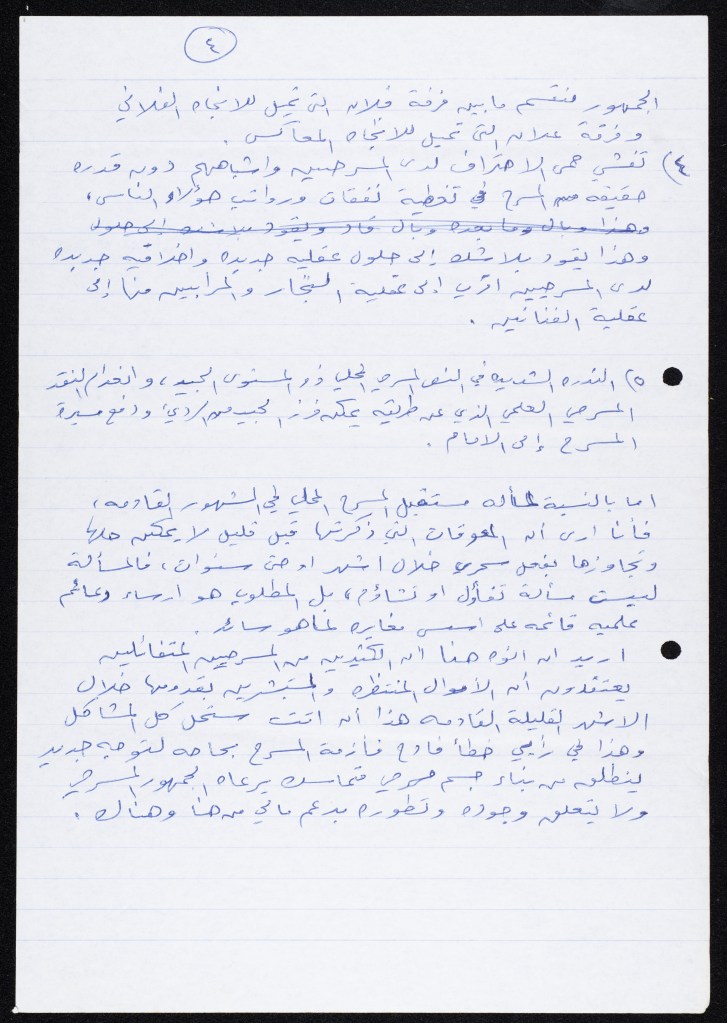 رسالة من كريم خلف إلى الفرق العاملة في تجمع العمل والتطوير الفني – لجنة المسرح، 1979