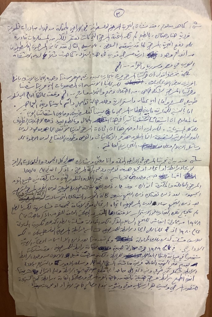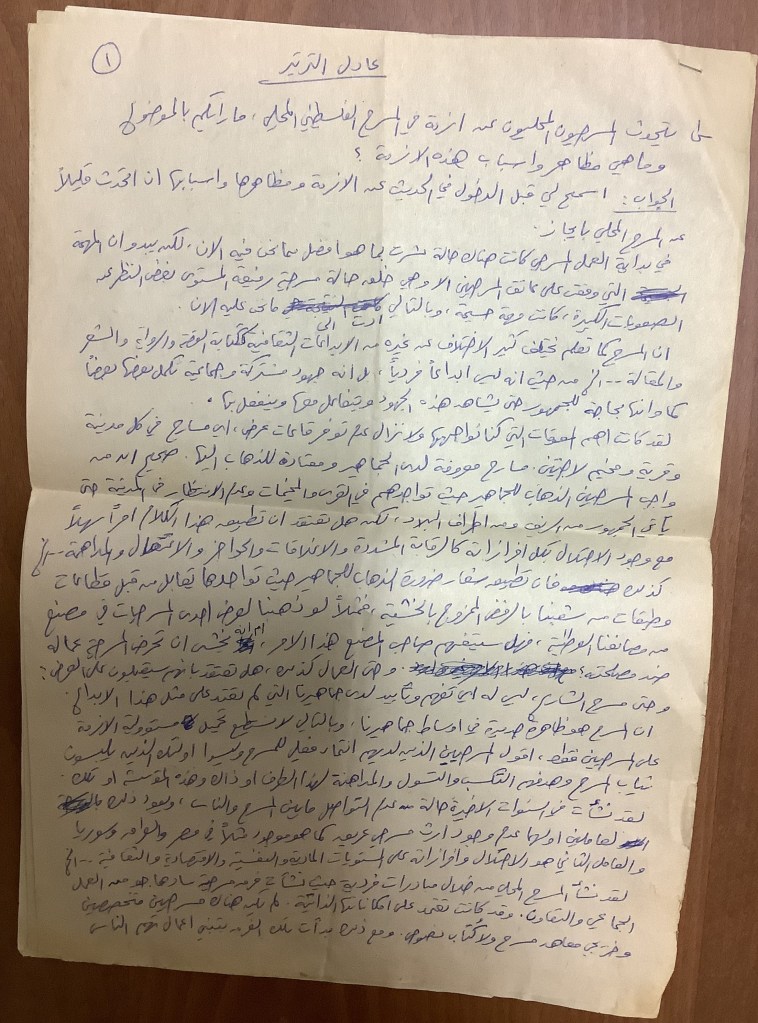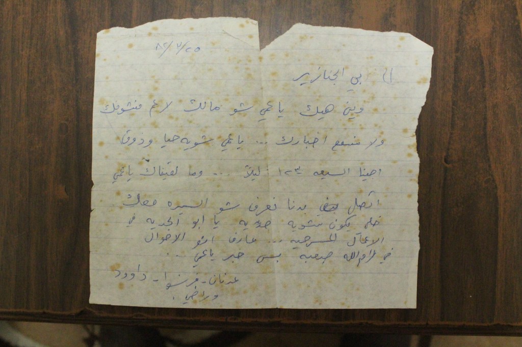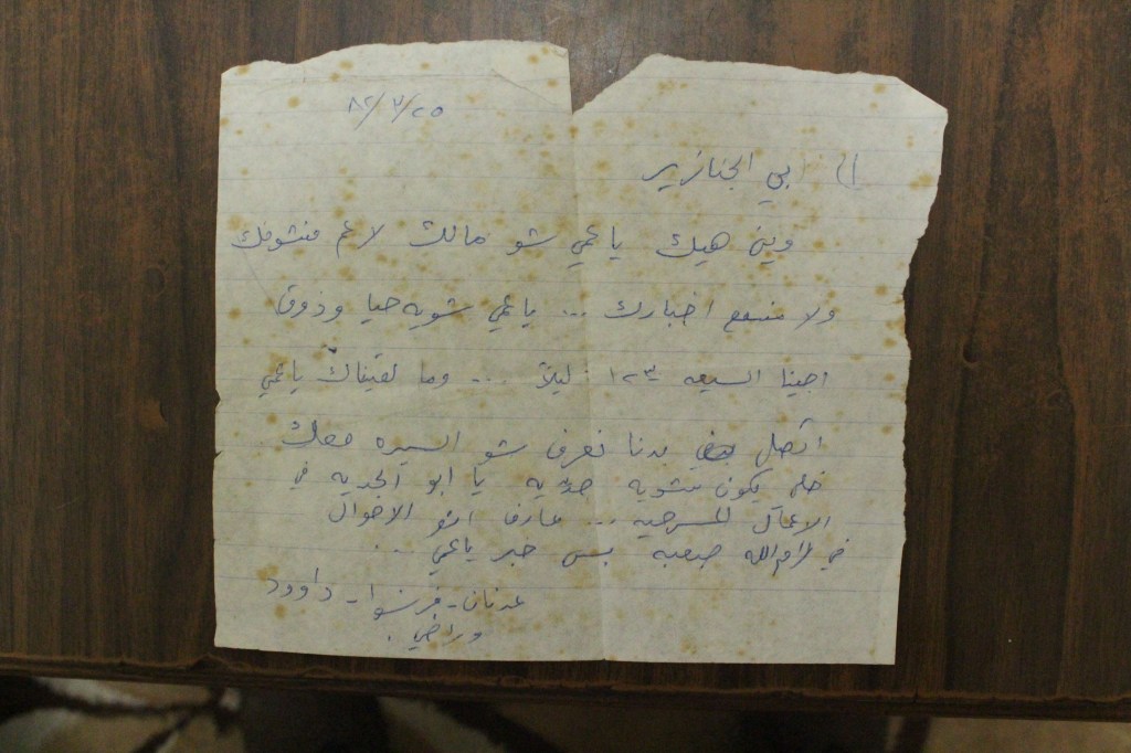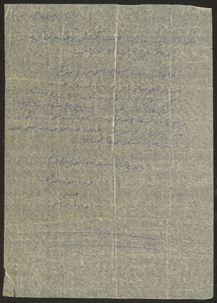 رسالة من كريم خلف إلى عادل الترتير، رام الله، 22 أيار 1980