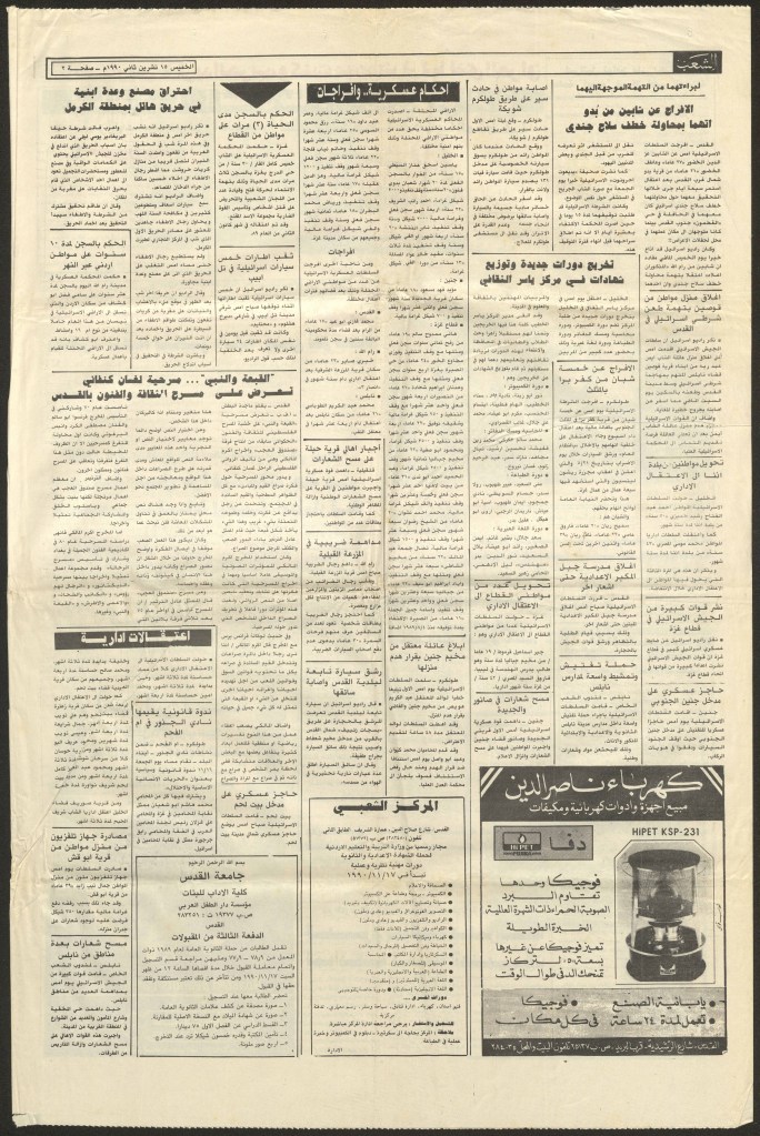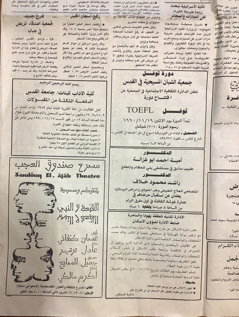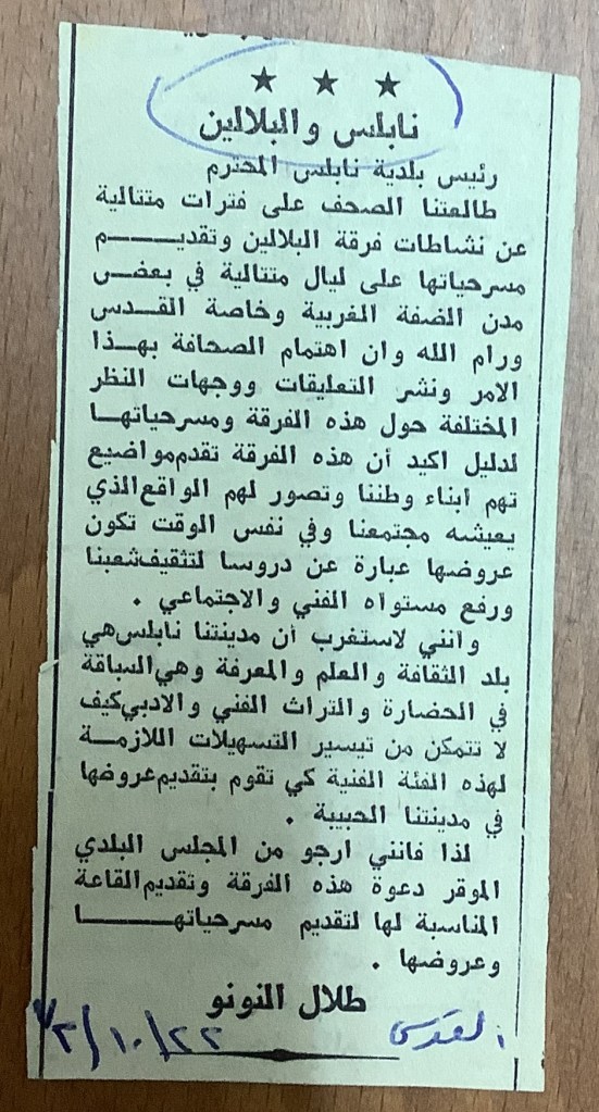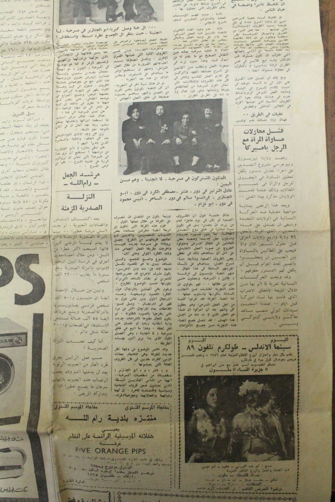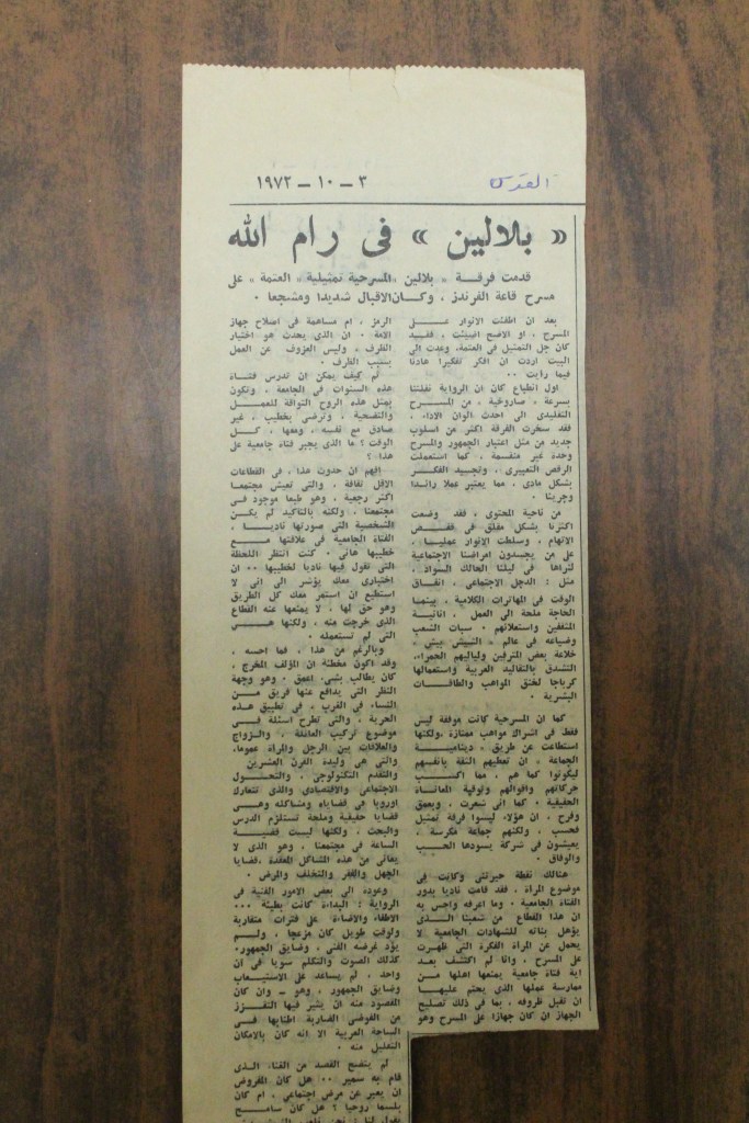 “عرض مسرحي بجامعة بيت لحم”، قصاصة من جريدة، 31 تشرين الأول 1980