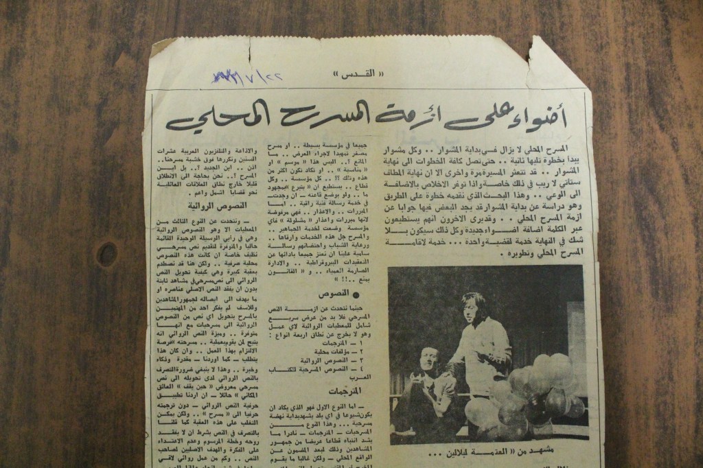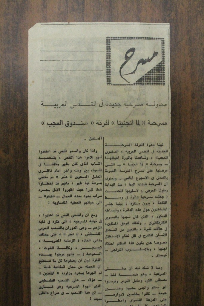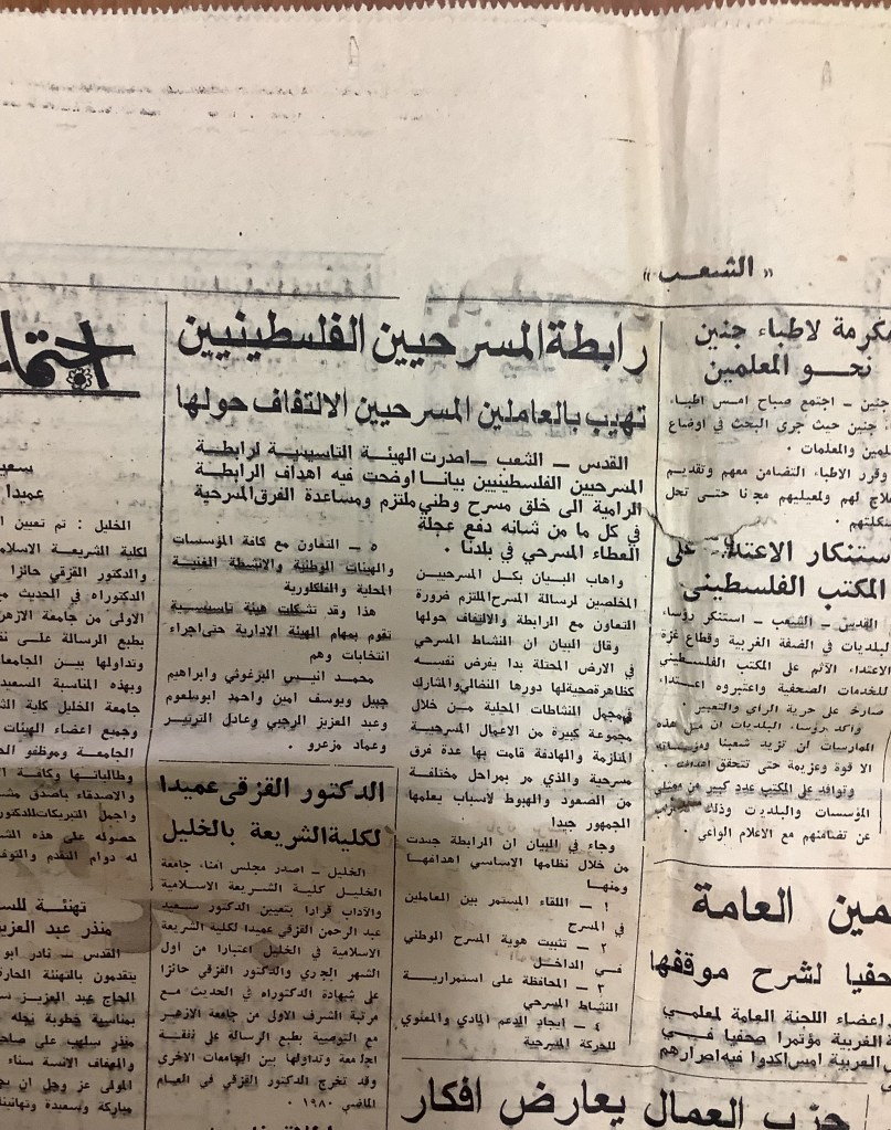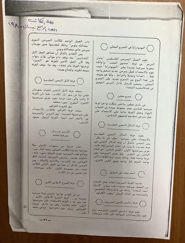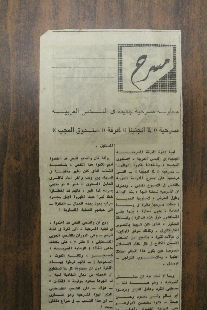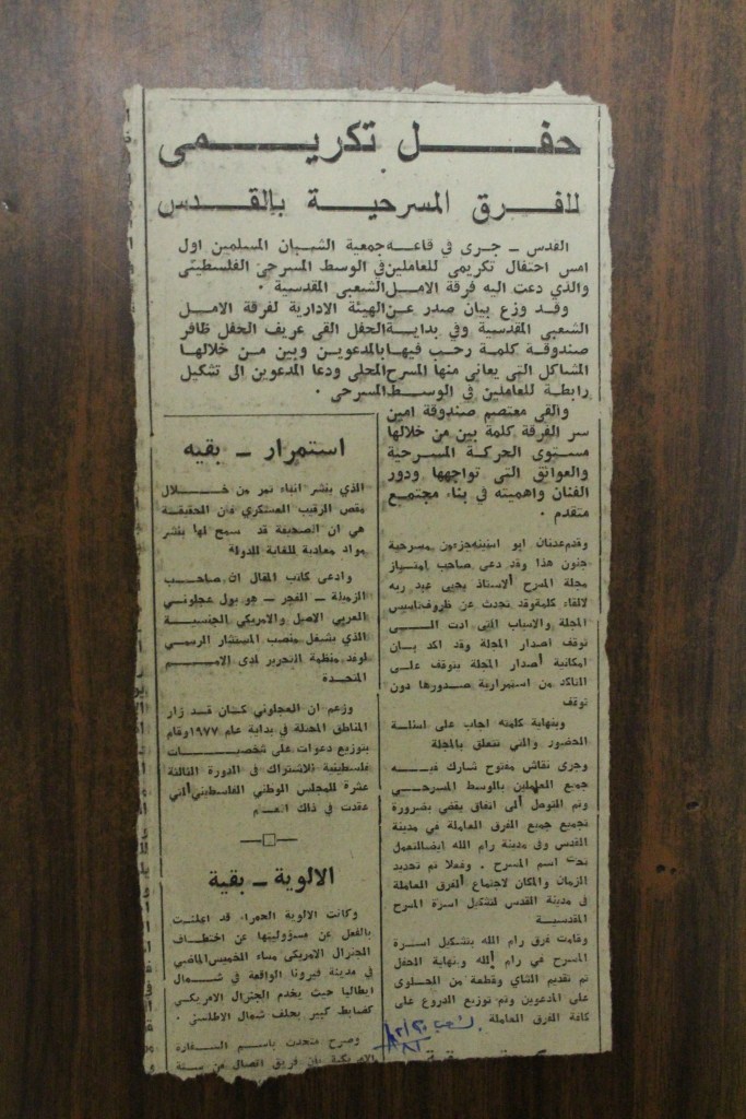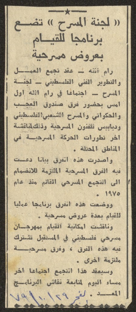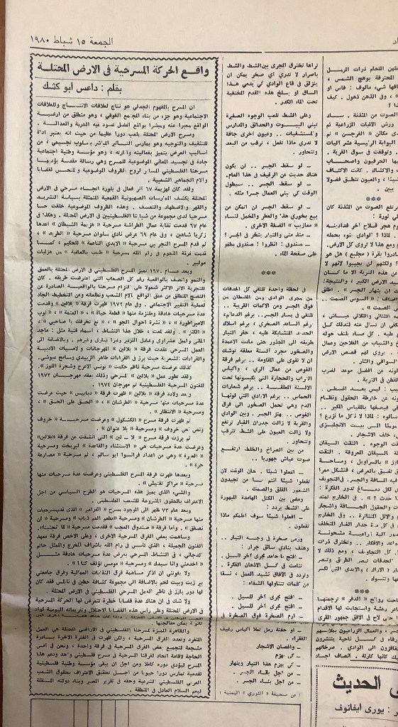 “واقع الحركة المسرحية في الأراضي المحتلة”، قصاصة من جريدة، 15 شباط 1980