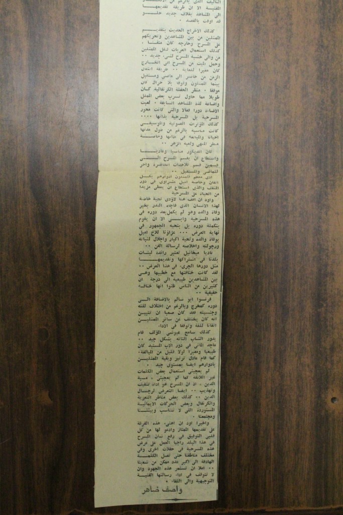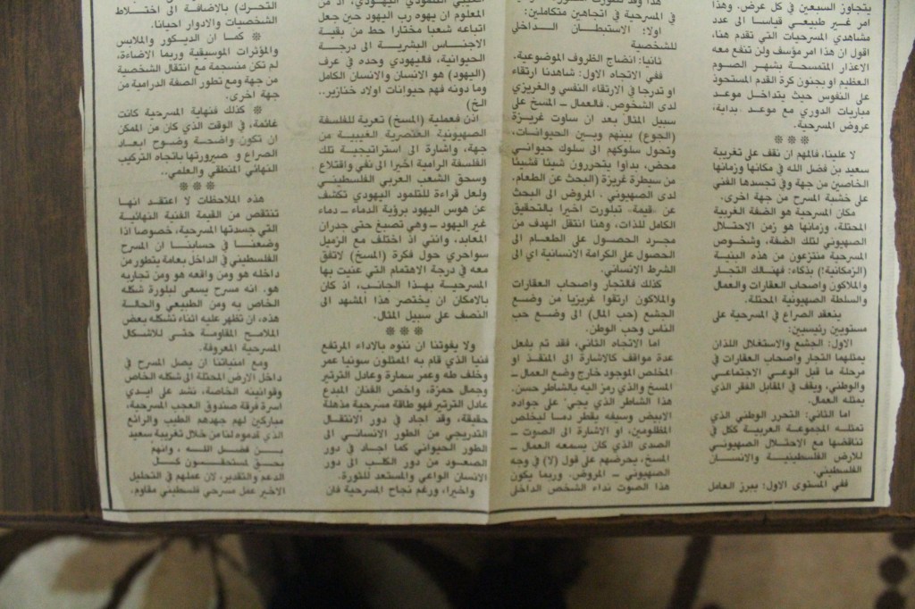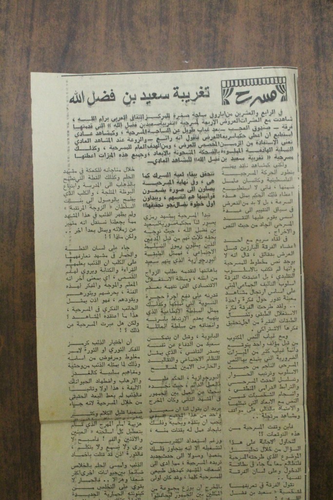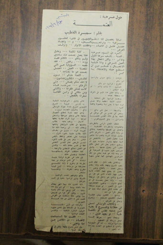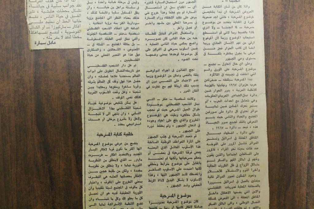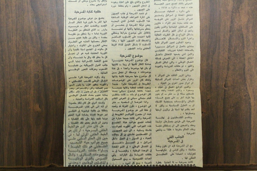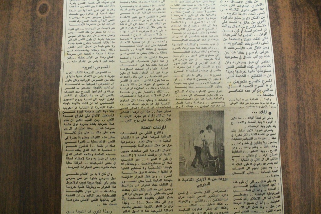 “واقع الحركة المسرحية في الأراضي المحتلة”، قصاصة من جريدة، 15 شباط 1980