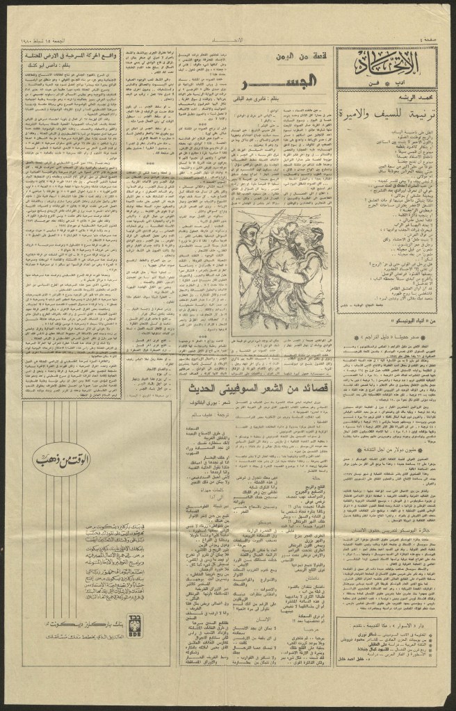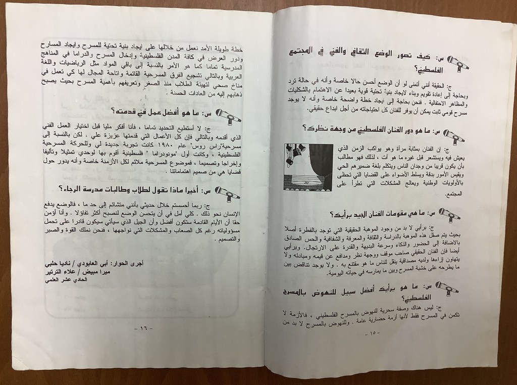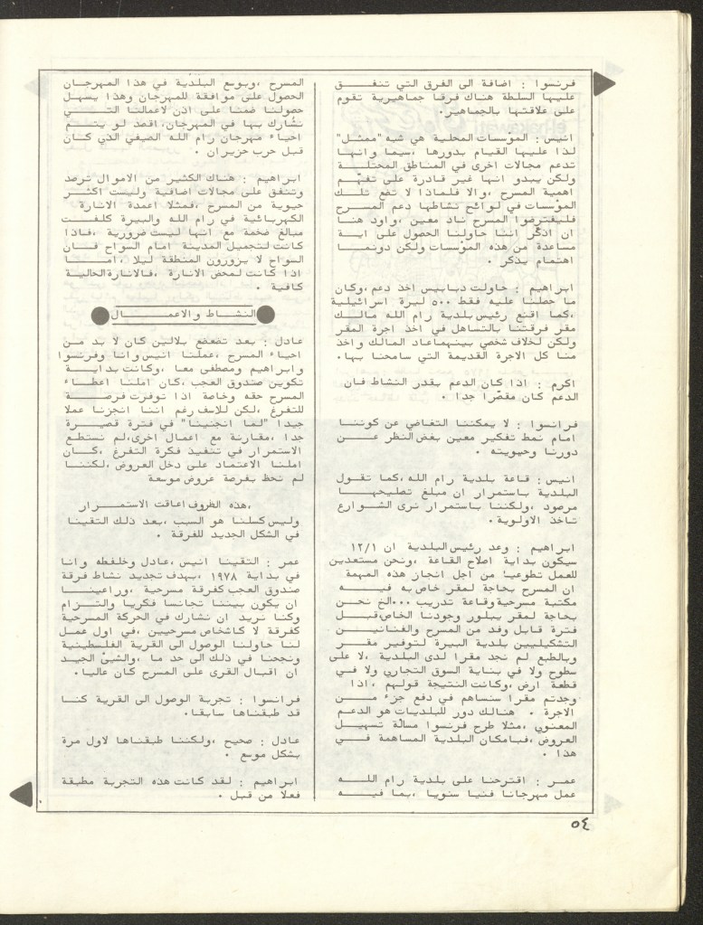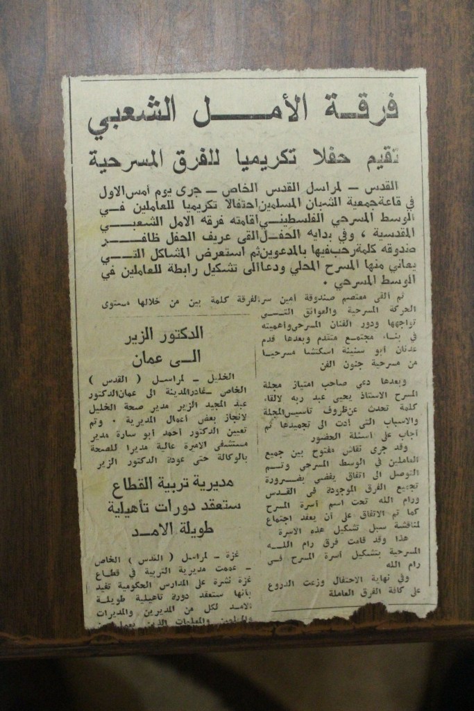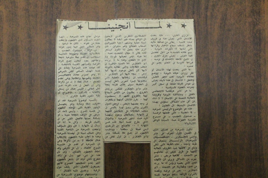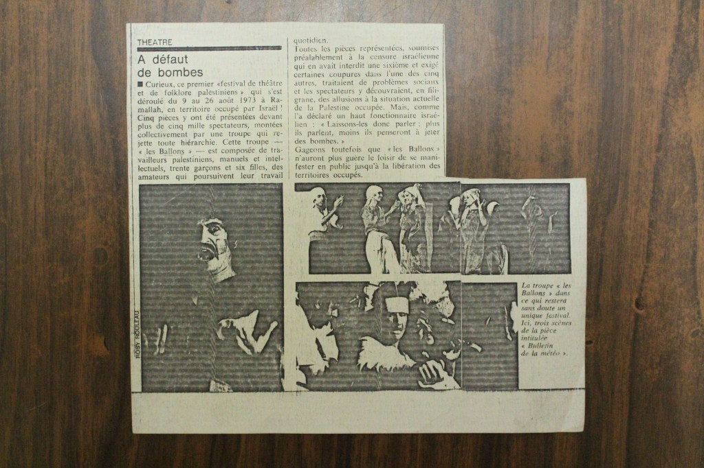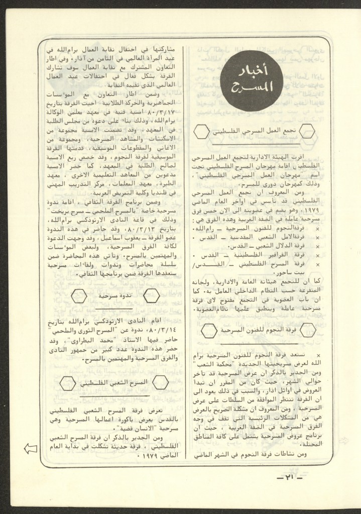“واقع الحركة المسرحية في الأراضي المحتلة”، قصاصة من جريدة، 15 شباط 1980