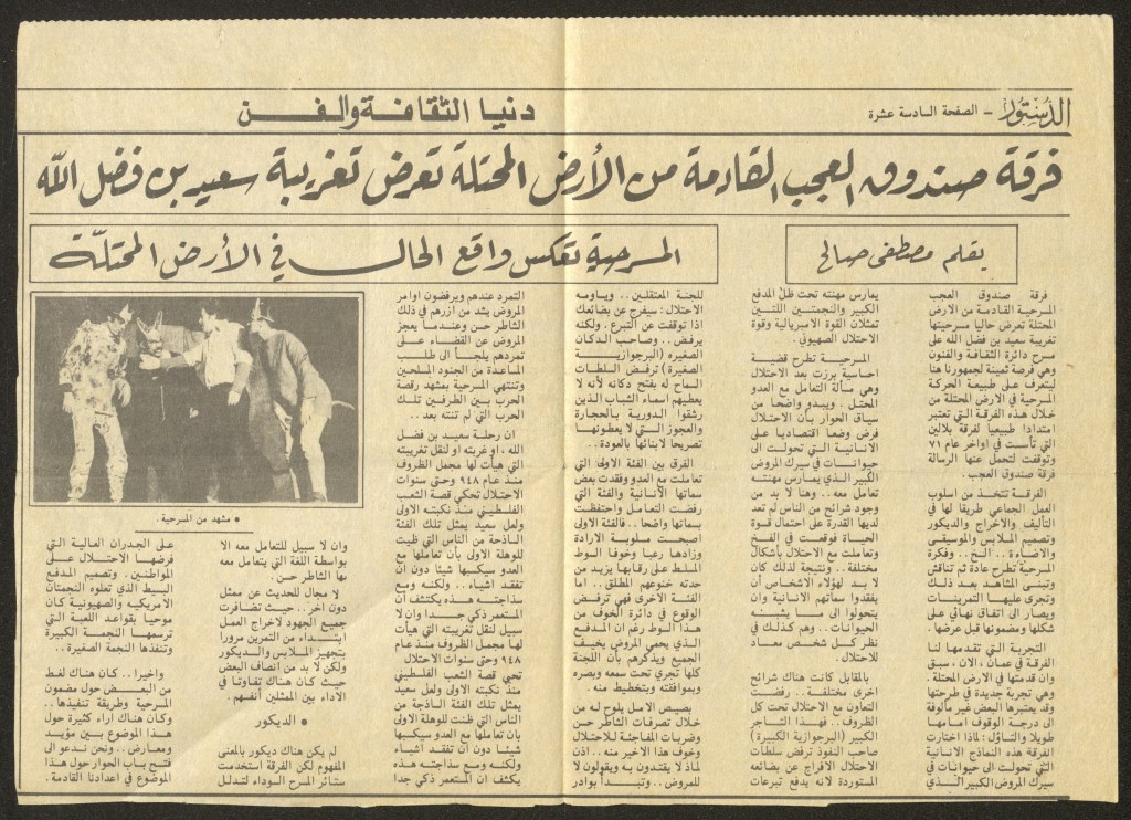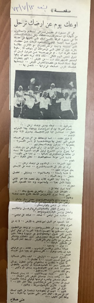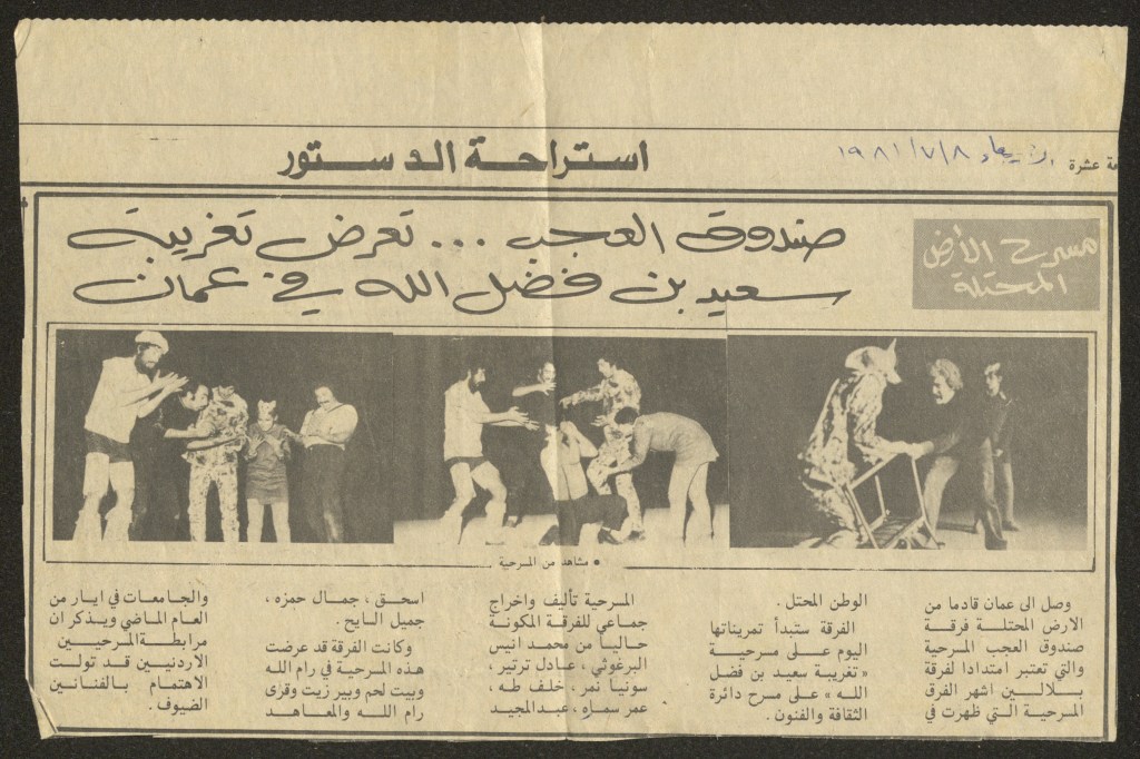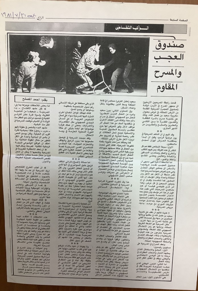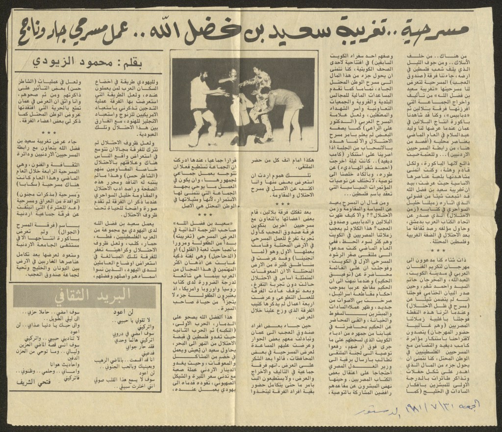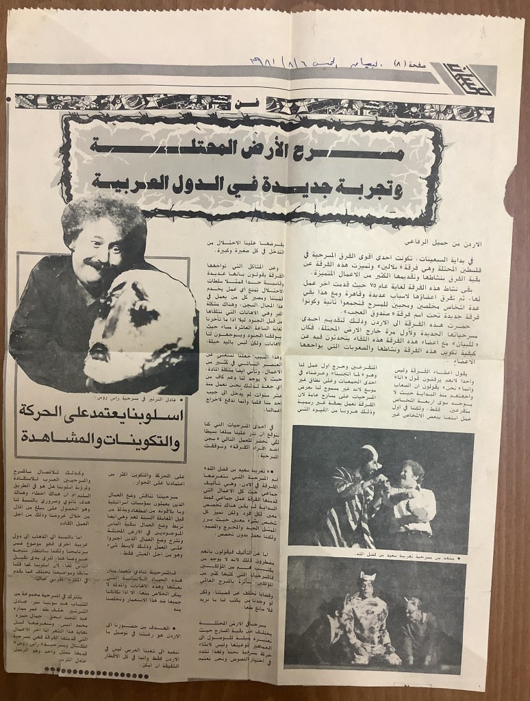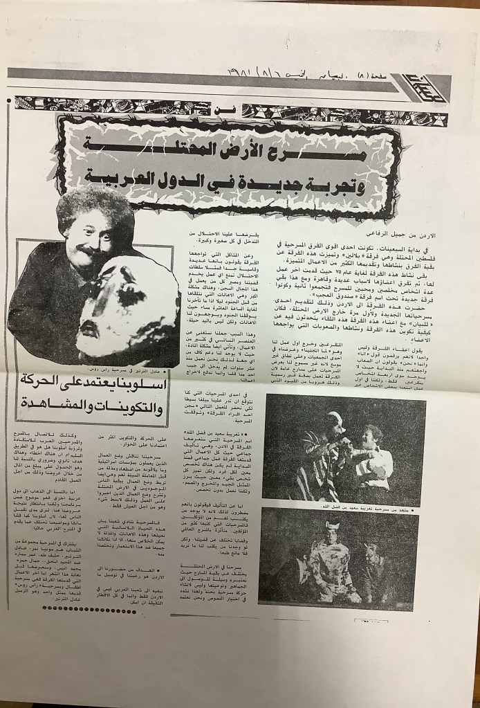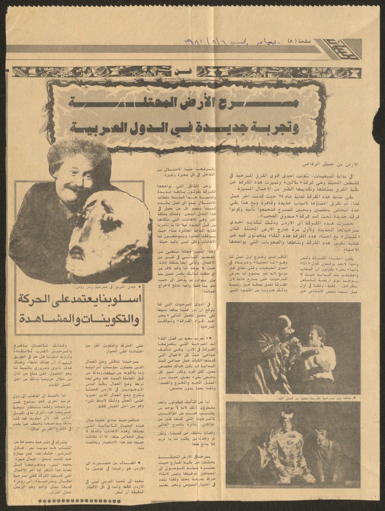 “مسرح الأرض المحتلة وتجربة جديدة في الدول العربية”، قصاصة من جريدة، 6 آب 1981