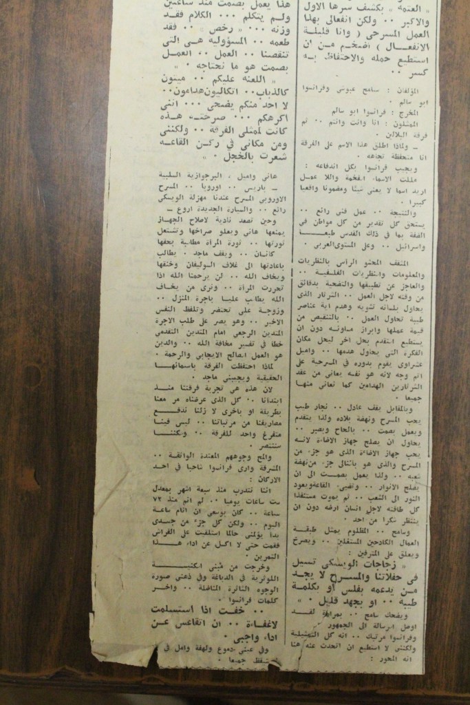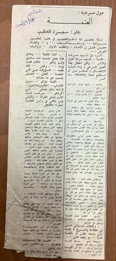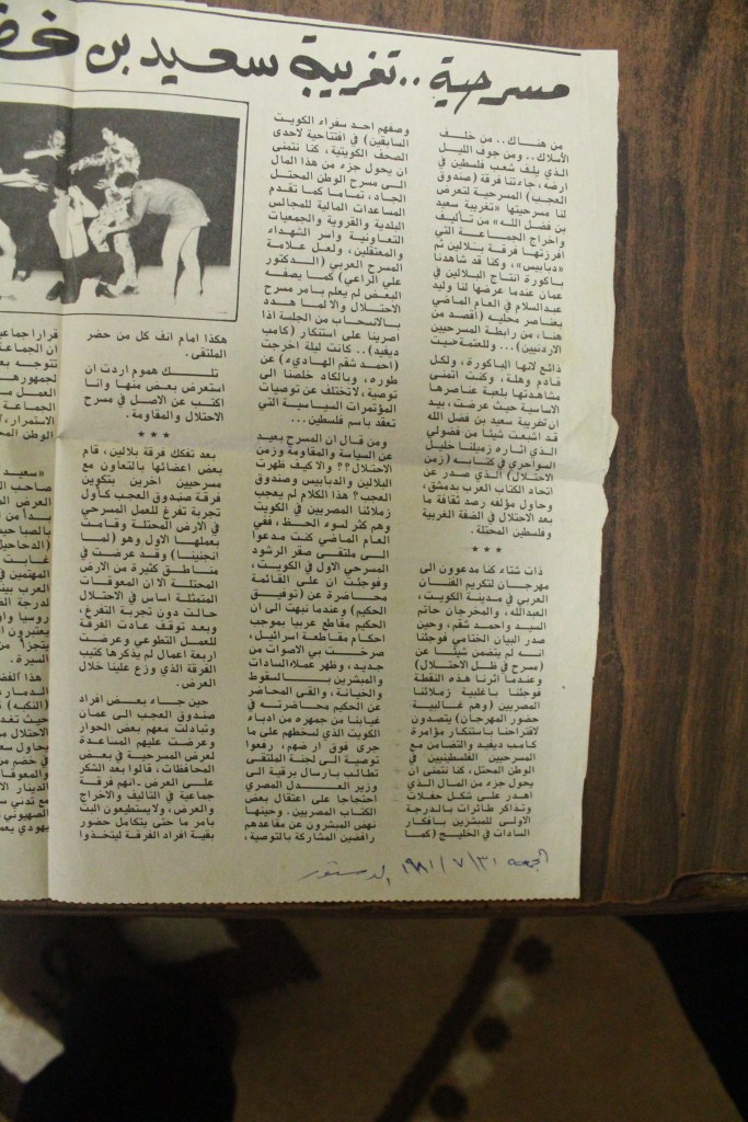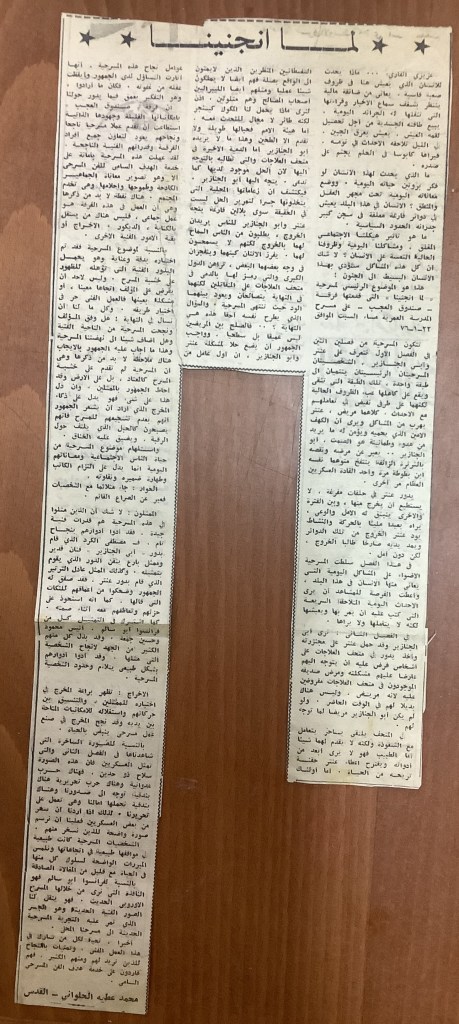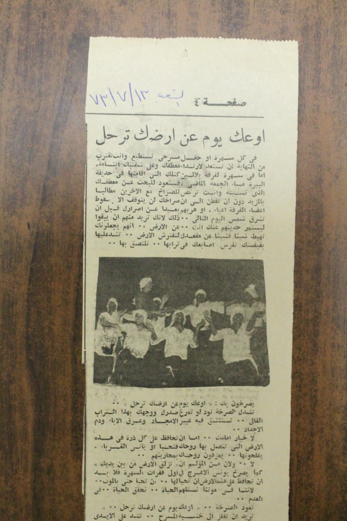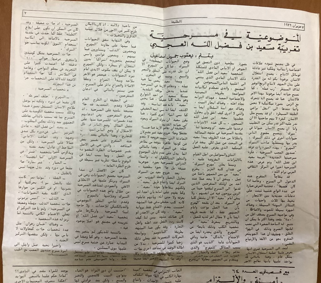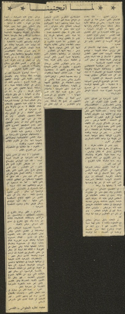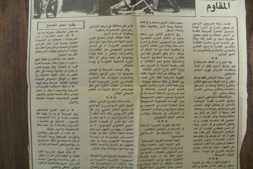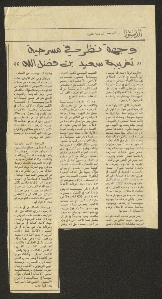 “مسرح الأرض المحتلة وتجربة جديدة في الدول العربية”، قصاصة من جريدة، 6 آب 1981