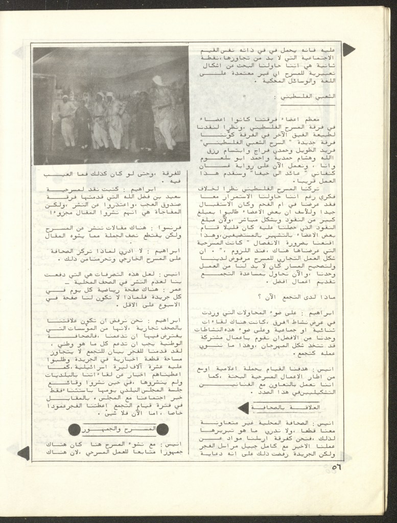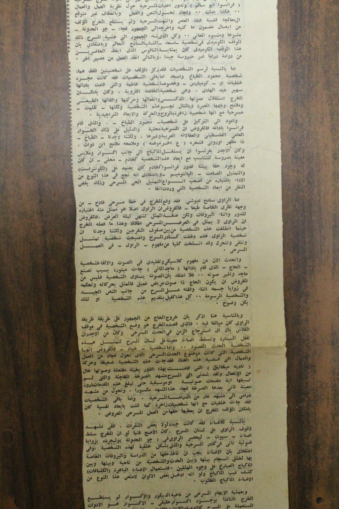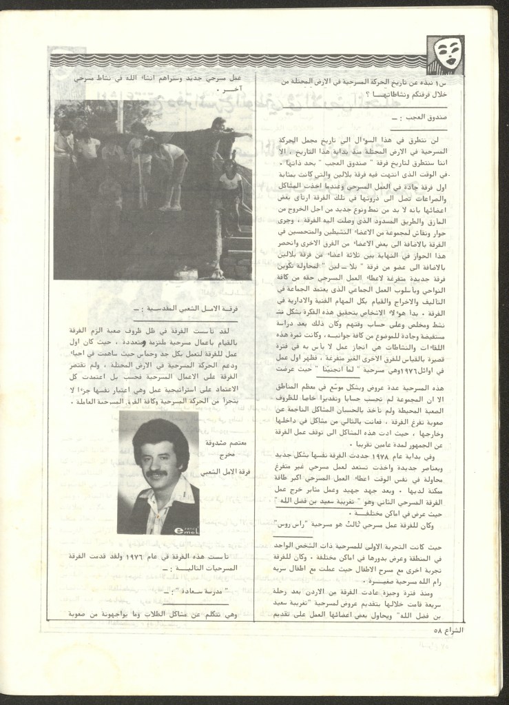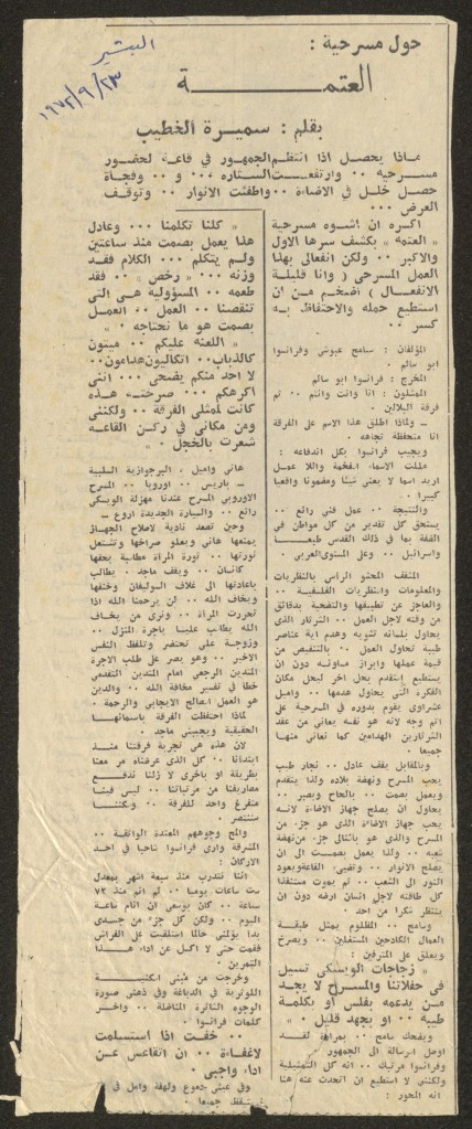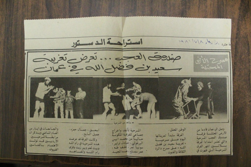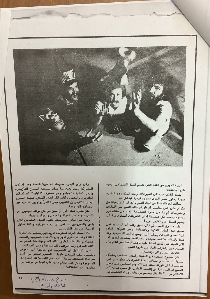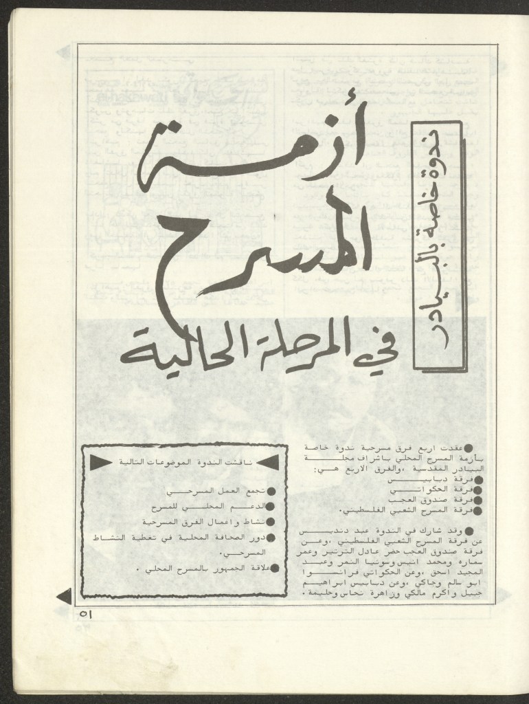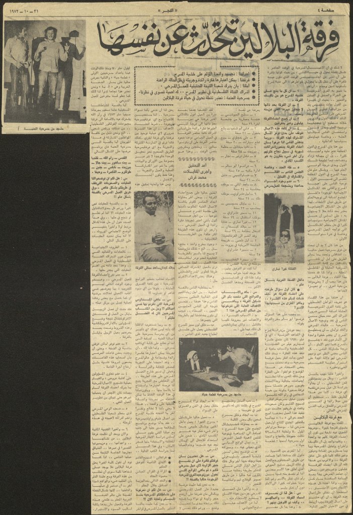 “مسرح الأرض المحتلة وتجربة جديدة في الدول العربية”، قصاصة من جريدة، 6 آب 1981