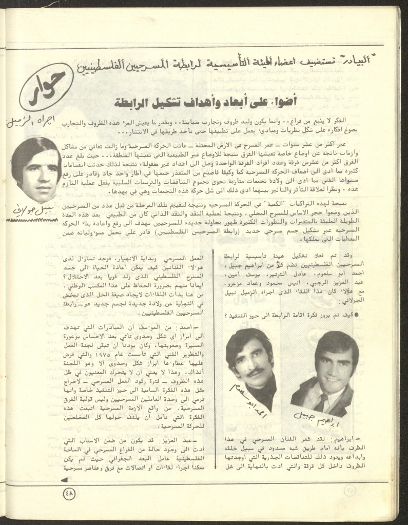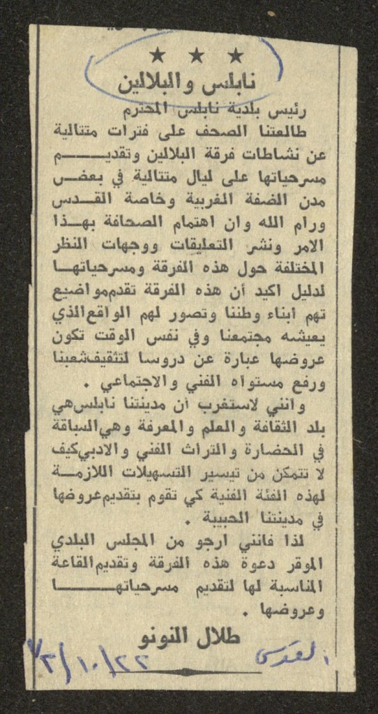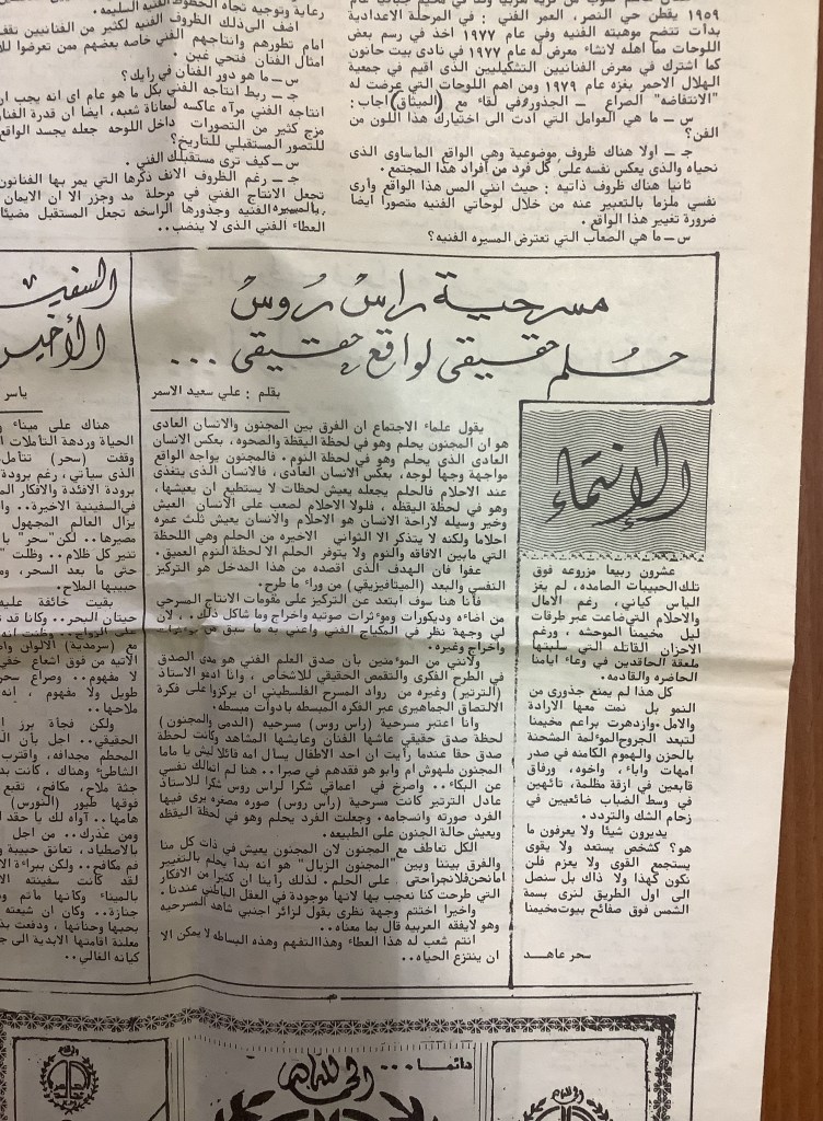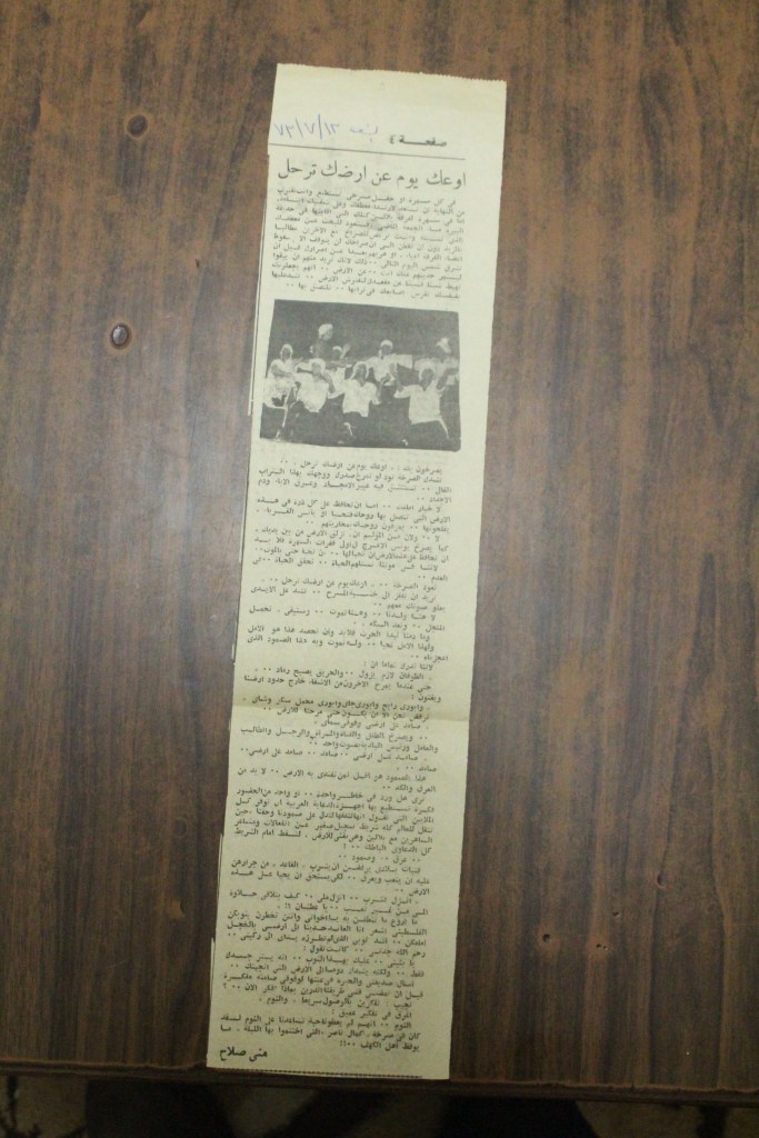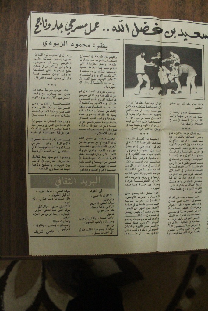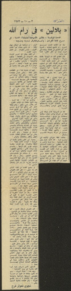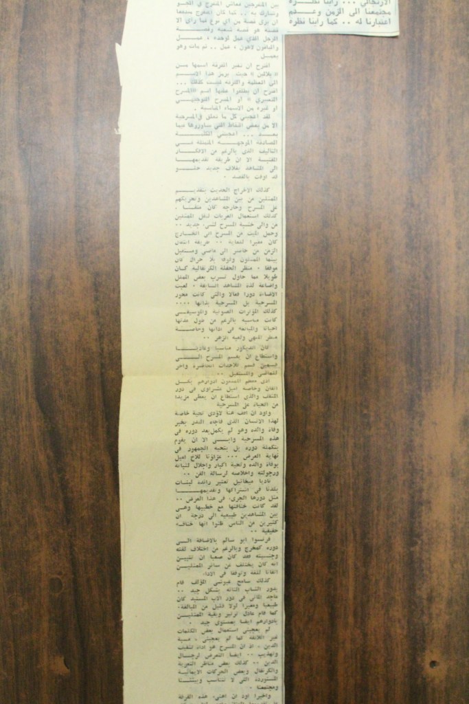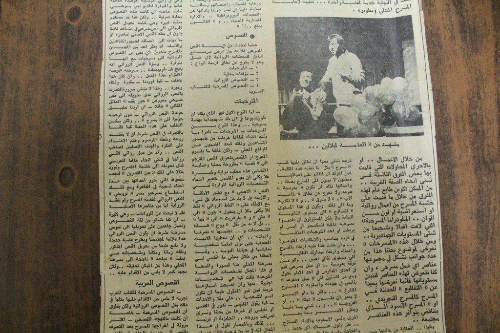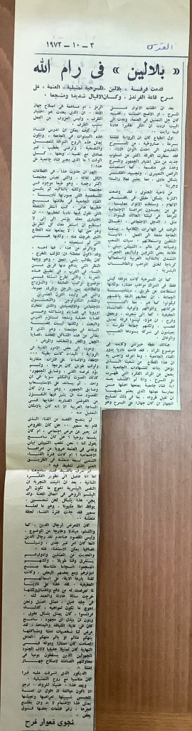 “مسرح الأرض المحتلة وتجربة جديدة في الدول العربية”، قصاصة من جريدة، 6 آب 1981