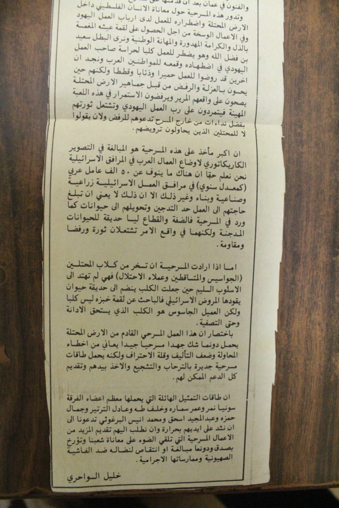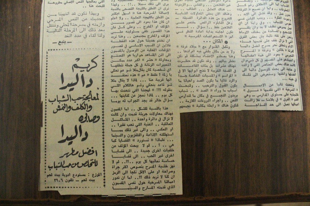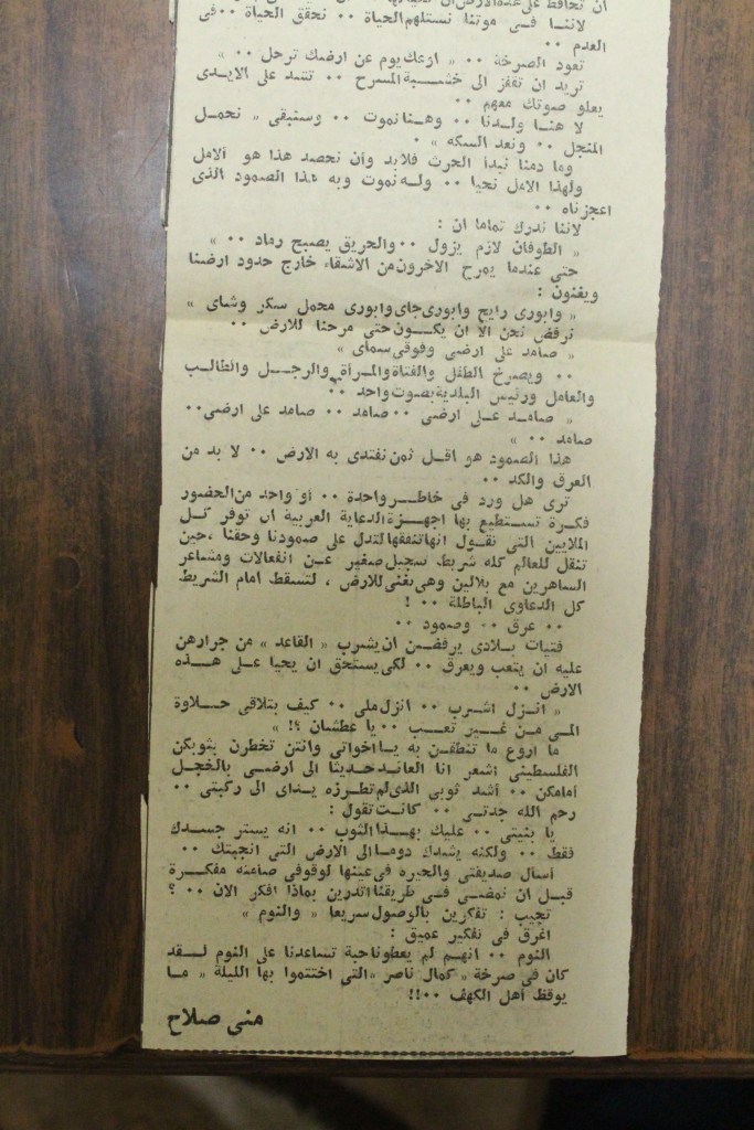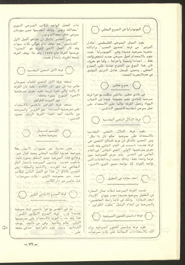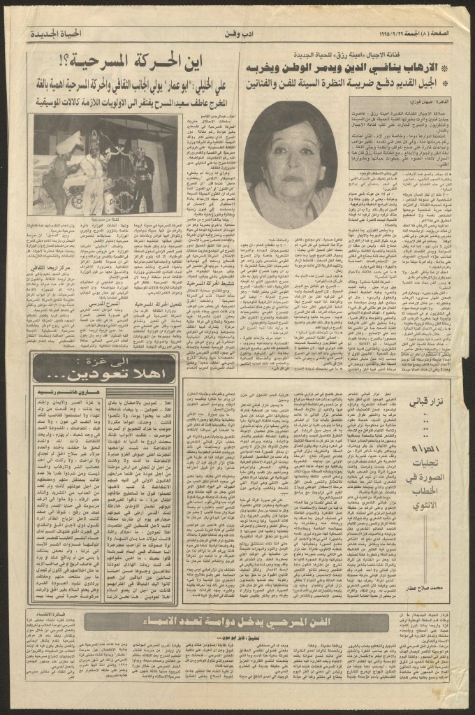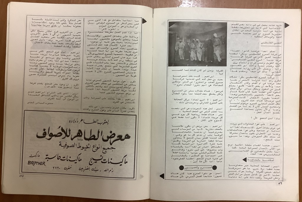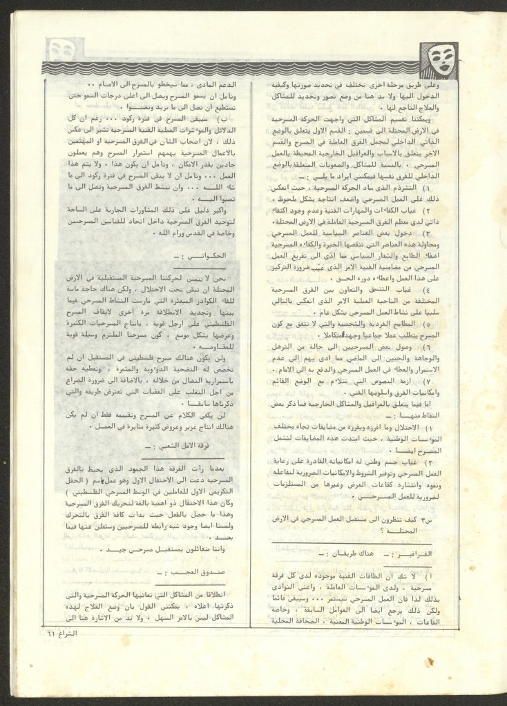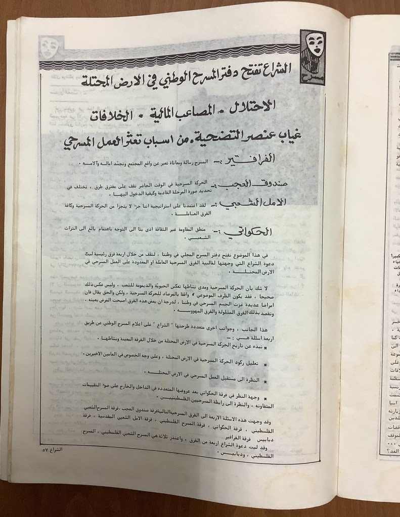 “مسرح الأرض المحتلة وتجربة جديدة في الدول العربية”، قصاصة من جريدة، 6 آب 1981