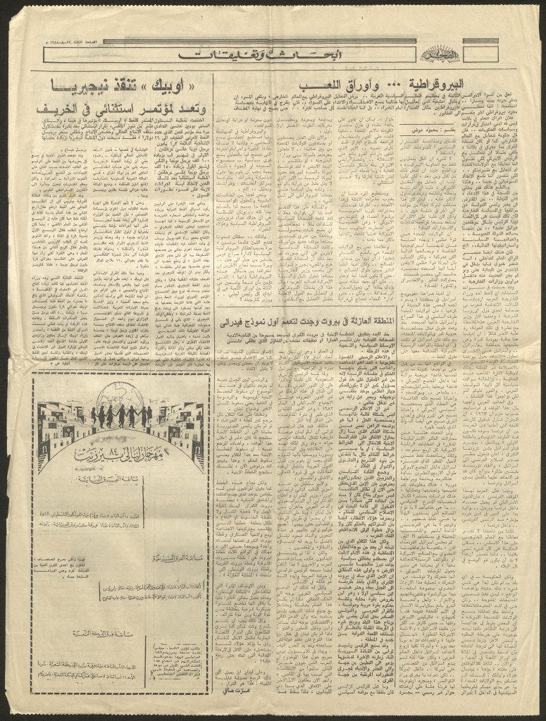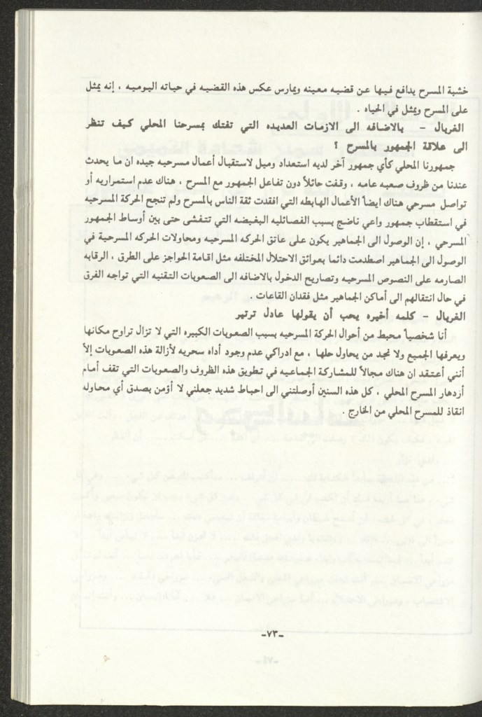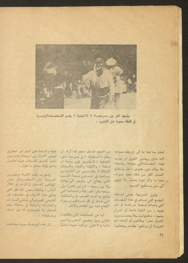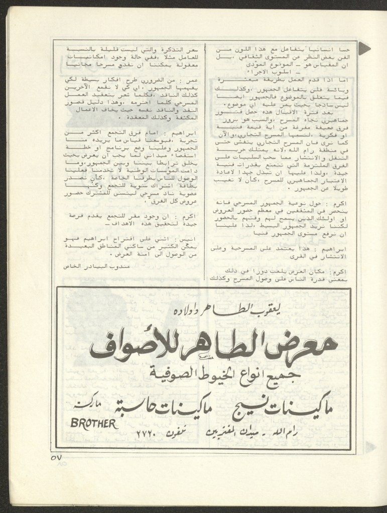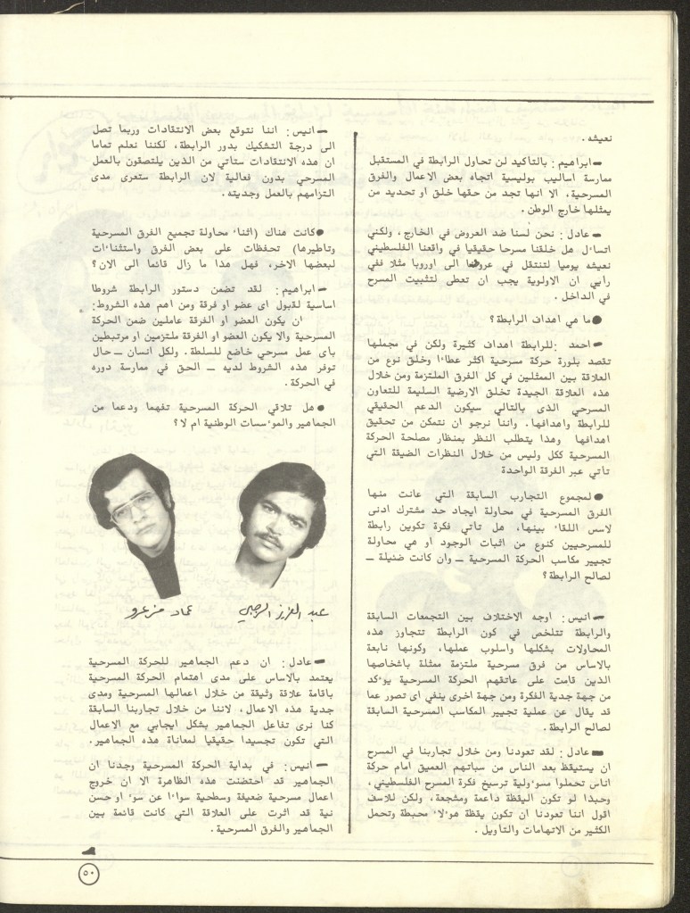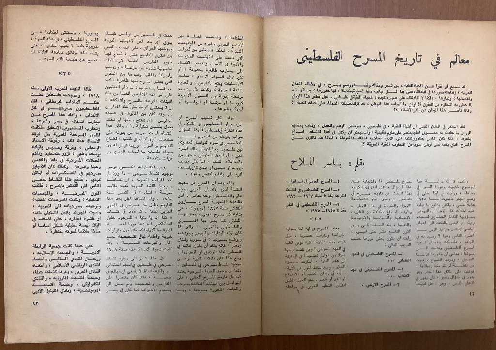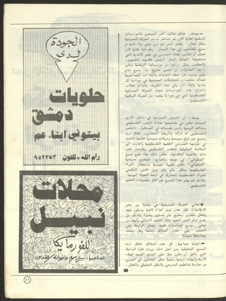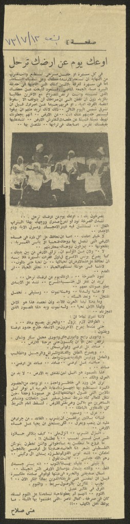 “مسرح الأرض المحتلة وتجربة جديدة في الدول العربية”، قصاصة من جريدة، 6 آب 1981