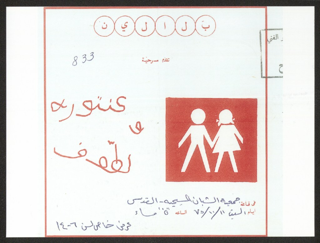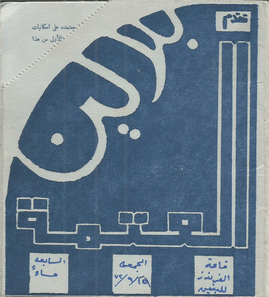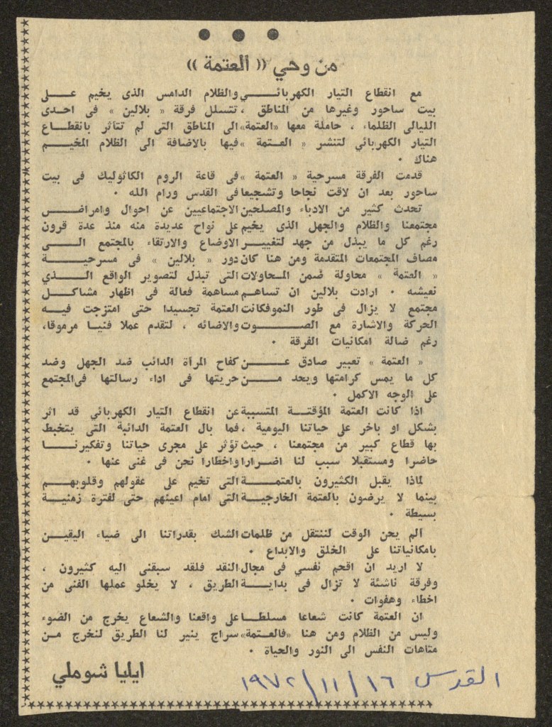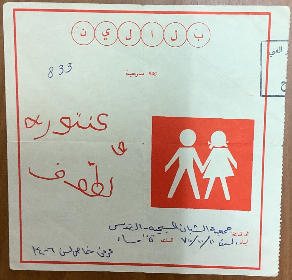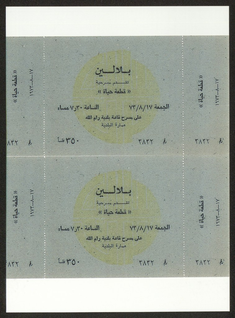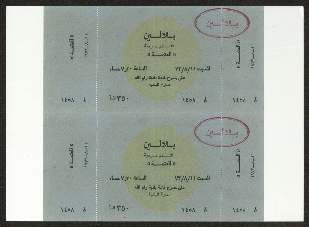 تذكرة الدخول لمسرحية “العتمة”، رام الله، 11 آب 1973