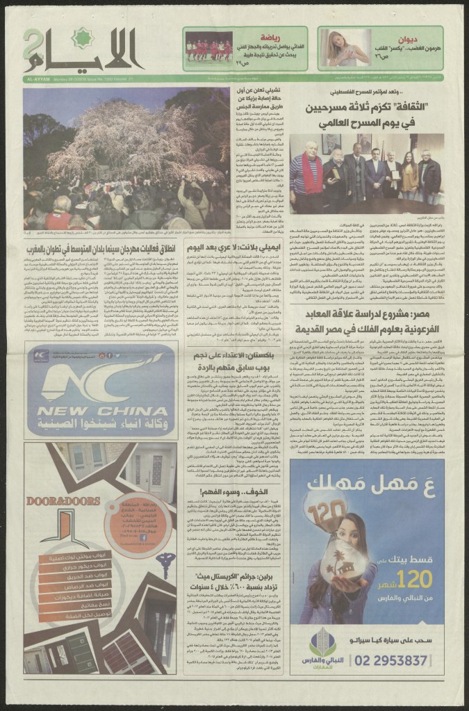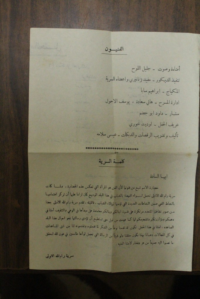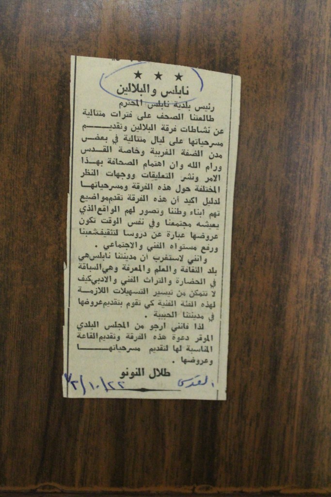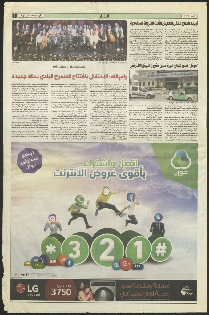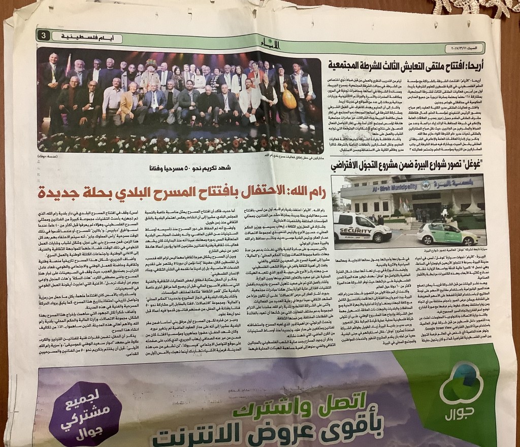 “رام الله: الاحتفال بافتتاح المسرح البلدي بحلة جديدة”، قصاصة من جريدة، 11 آذار 2017