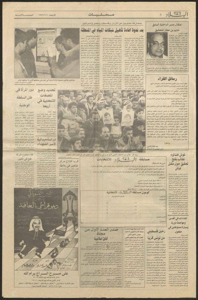 إعلان صادر عن صحيفة البلاد، 10 كانون الثاني 1996