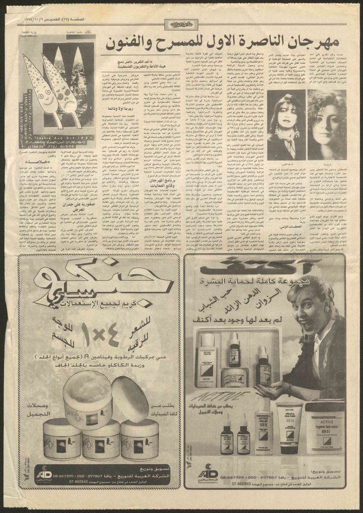 “مهرجان الناصرة الأول للمسرح والفنون”، قصاصة من جريدة، 6 تشرين الأول 1994