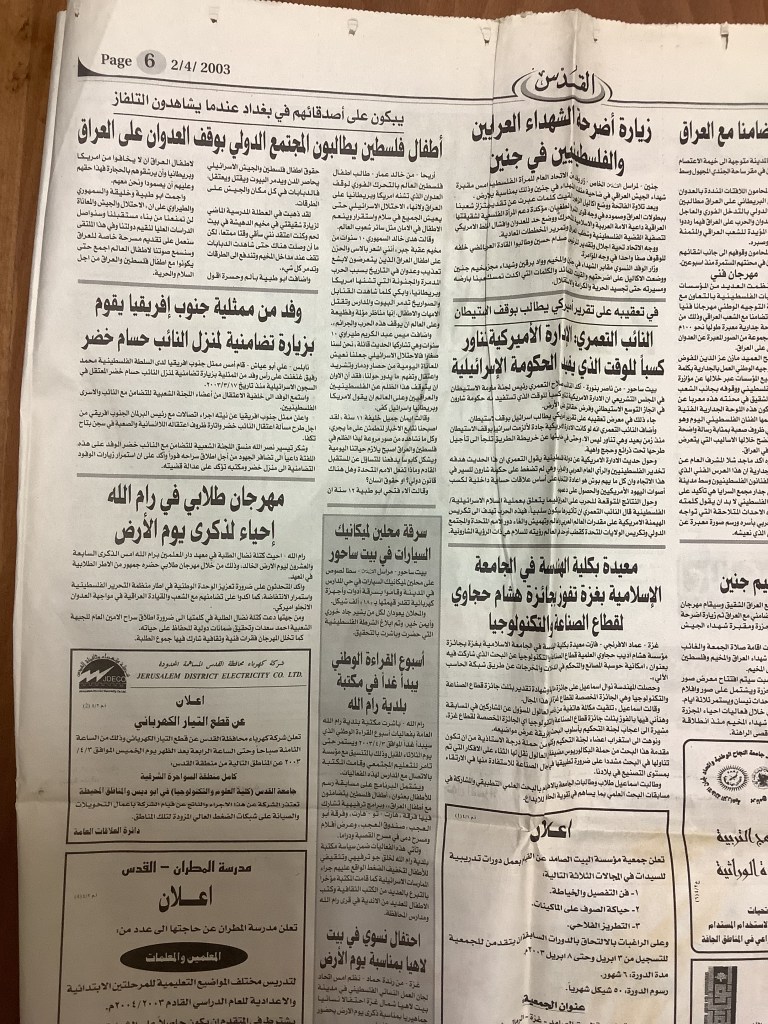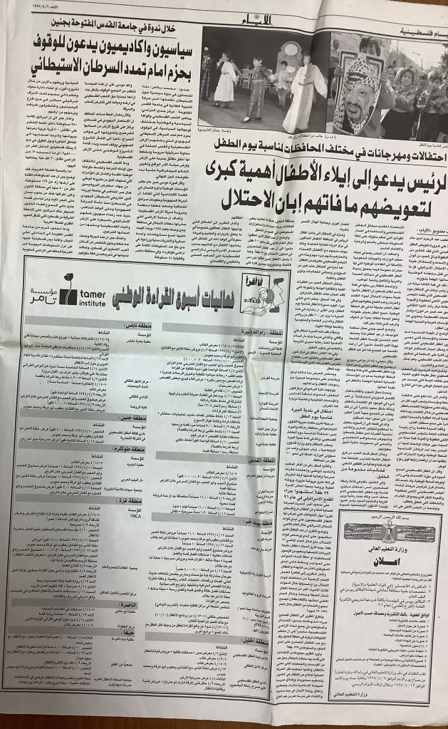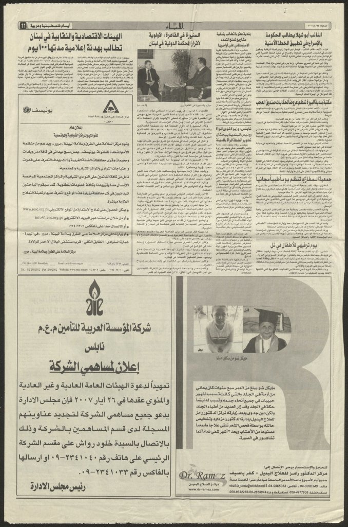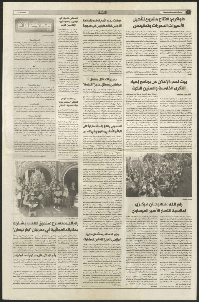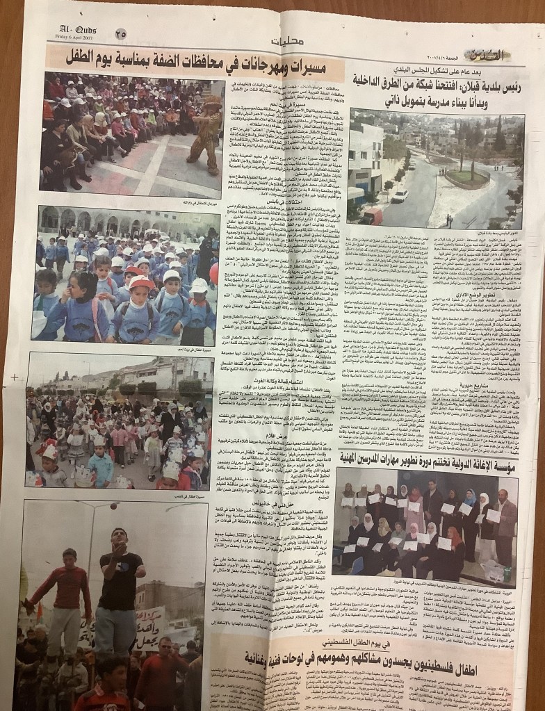 “أطفال فلسطين يحيون يومهم السنوي”، قصاصة من جريدة، 6 نيسان 2007