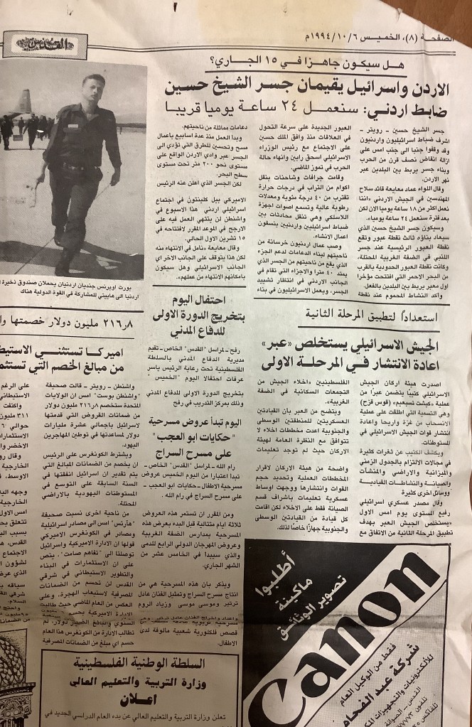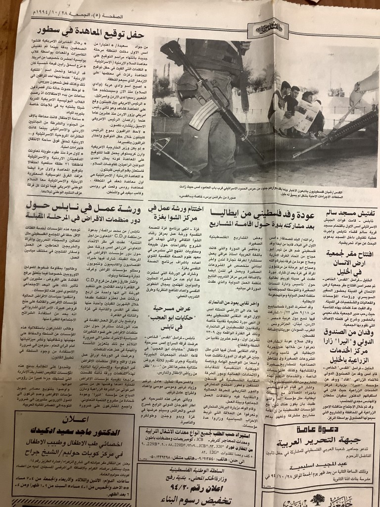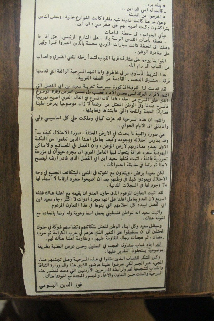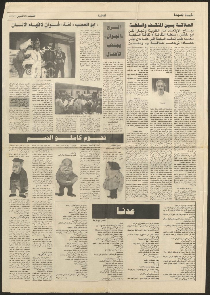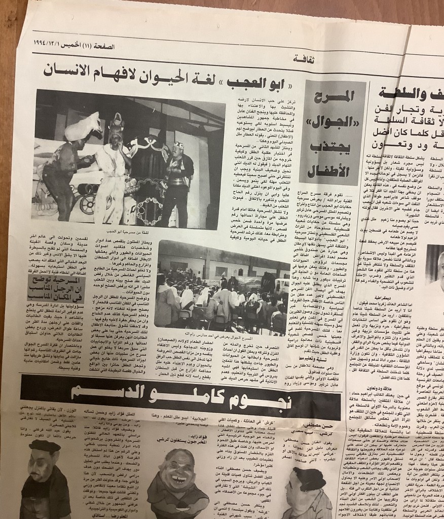 “عرض مسرحية حكايات أبو العجب في نابلس”، قصاصة من جريدة، 28 تشرين الأول 1994