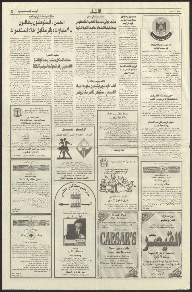 إعلان صادر عن صحيفة الأيام، 24 أيار 1997