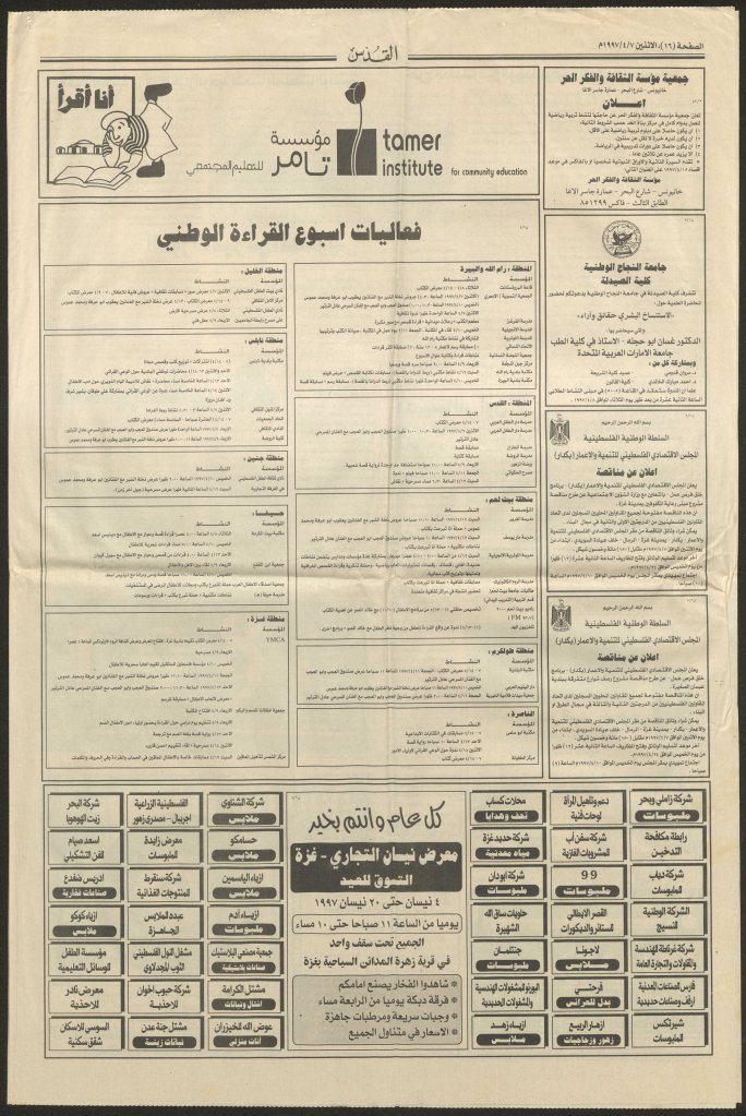برنامج فعاليات “أسبوع القراءة الوطني”، 7 نيسان 1997