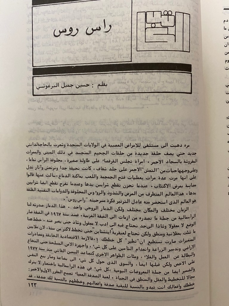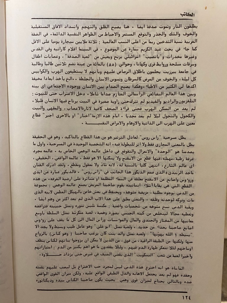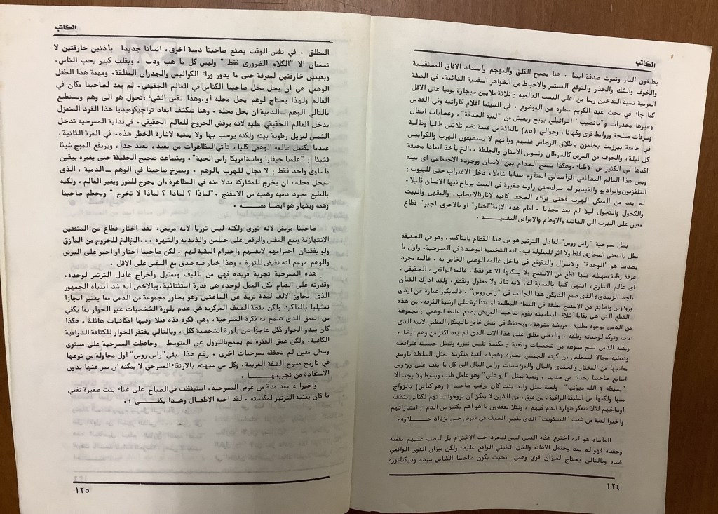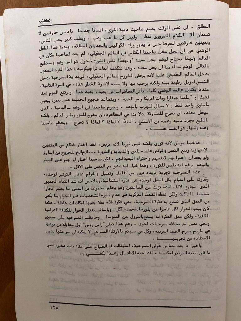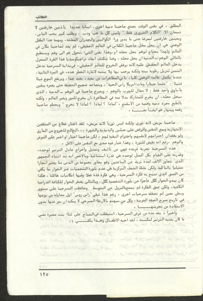 “مسرحية راس روس حلم حقيقي لواقع حقيقي”، قصاصة من جريدة، 29 آب 1984