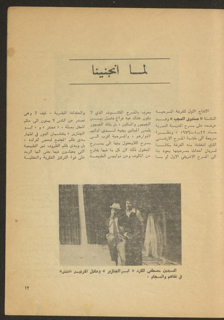 العدد الثاني من مجلة المسرح، شباط 1976