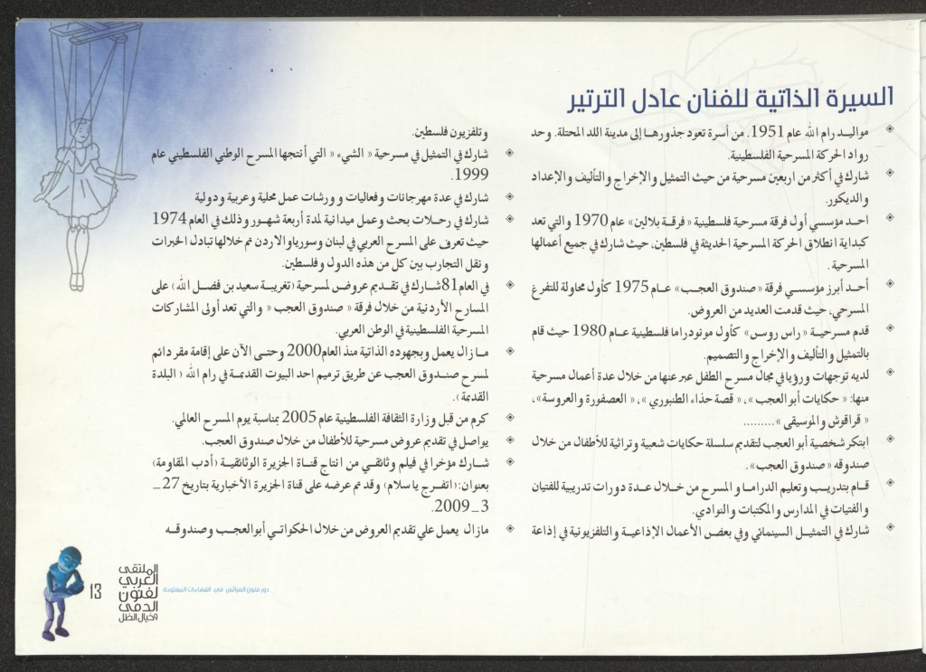 دليل الدورة الثالثة من “الملتقى العربي لفنون الدمى وخيال الظل”، تشرين الأول وتشرين الثاني 2015