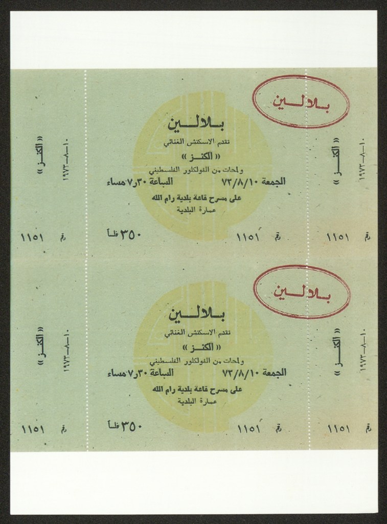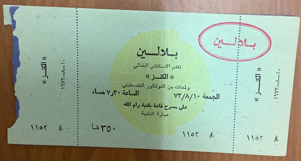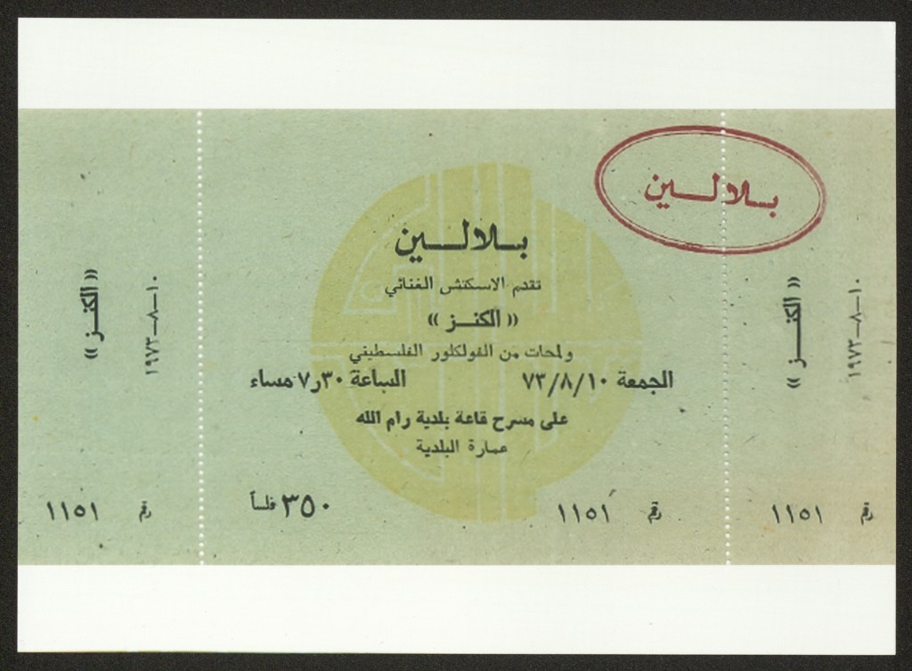 تذكرة الدخول لعرض “الكنز” الغنائي، رام الله، 10 آب 1973