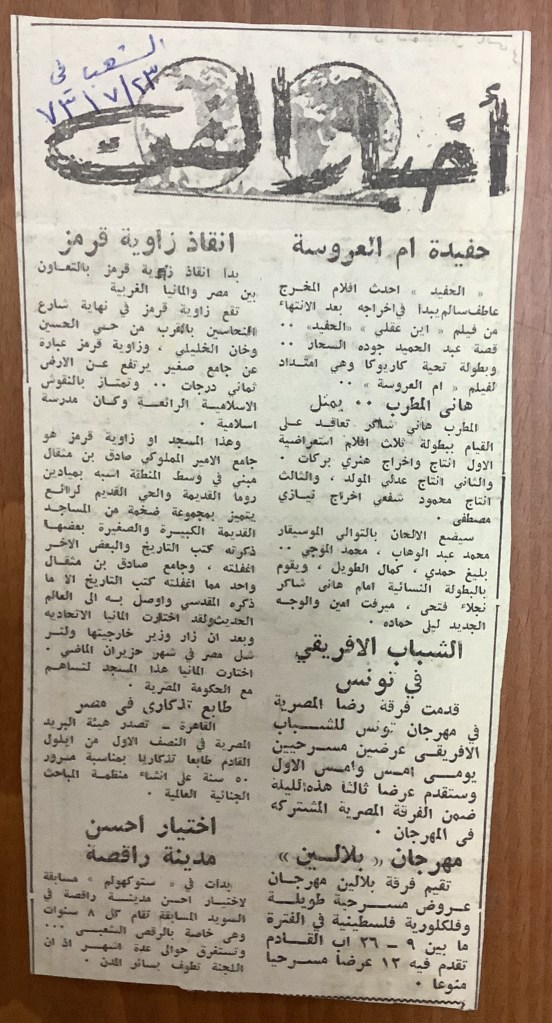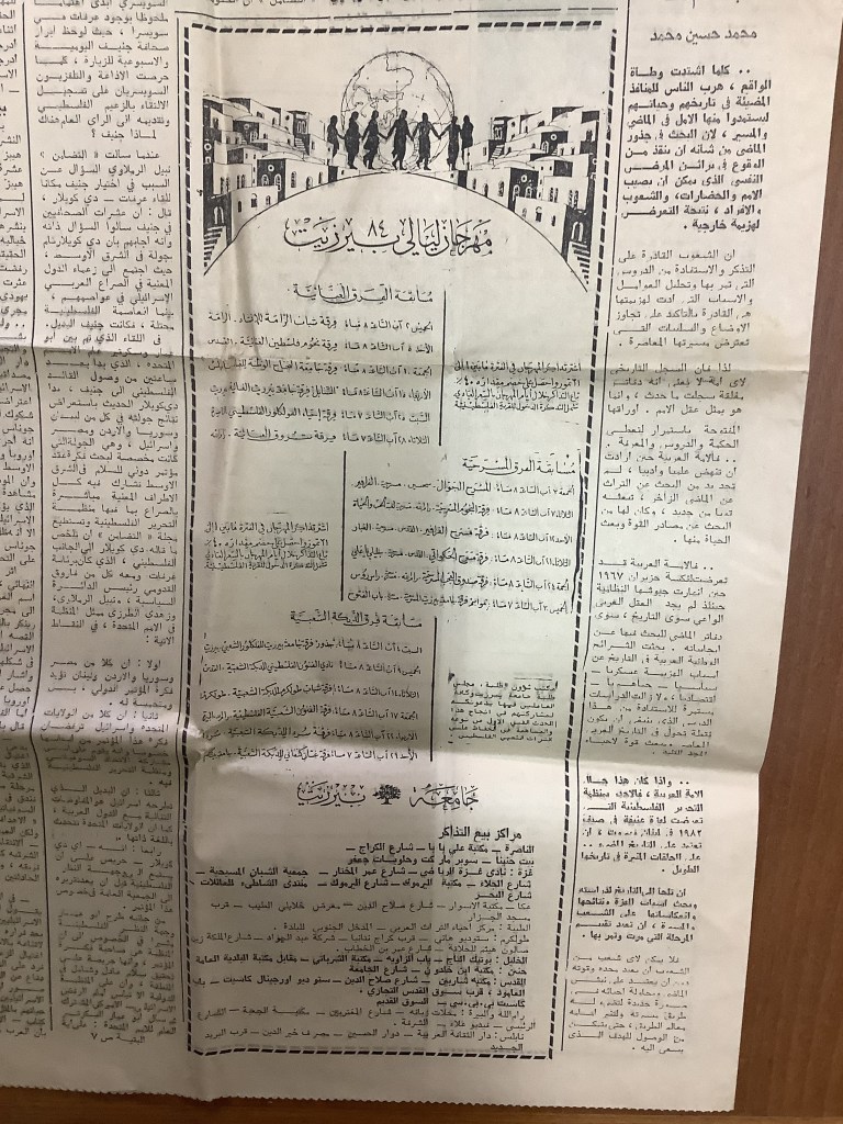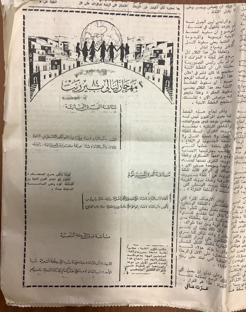 “مهرجان ليالي بيرزيت”، قصاصة من جريدة، 22 آب 1984