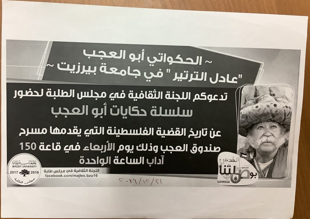 مُلصق لعرض “حكايات أبو العجب”، نابلس، 4 كانون الأول 2018