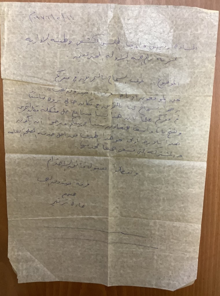 رسالة من عادل الترتير إلى مجلس بلدية رام الله، 18 أيار 2004