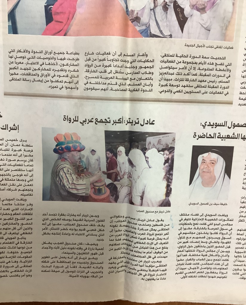 “عادل الترتير يطوف شارع الحكايات بـ “ملتقى الشارقة للراوي””، قصاصة من جريدة