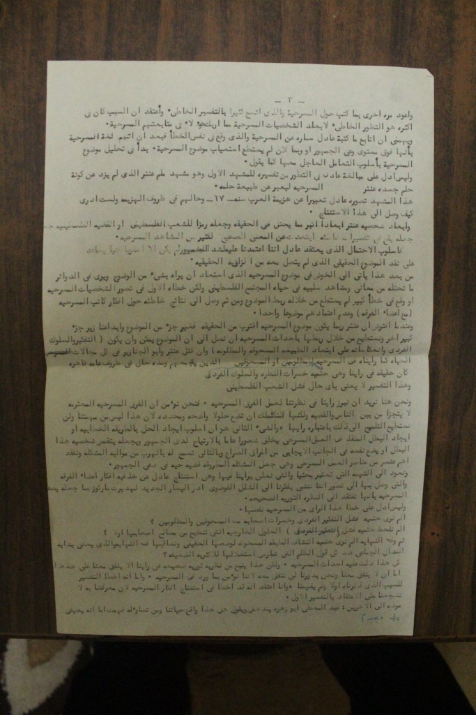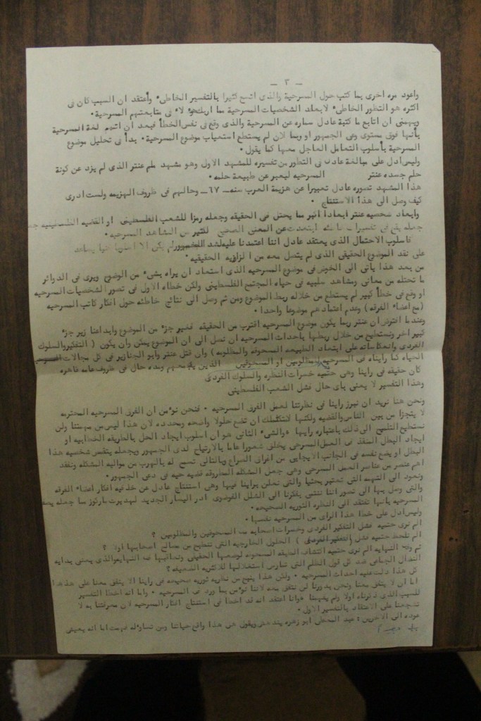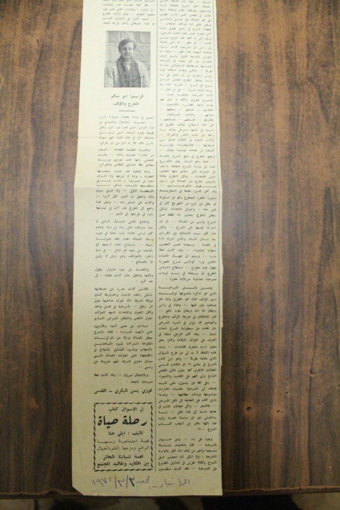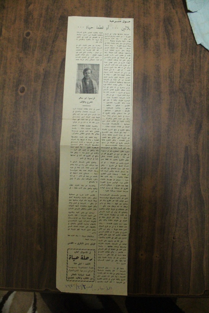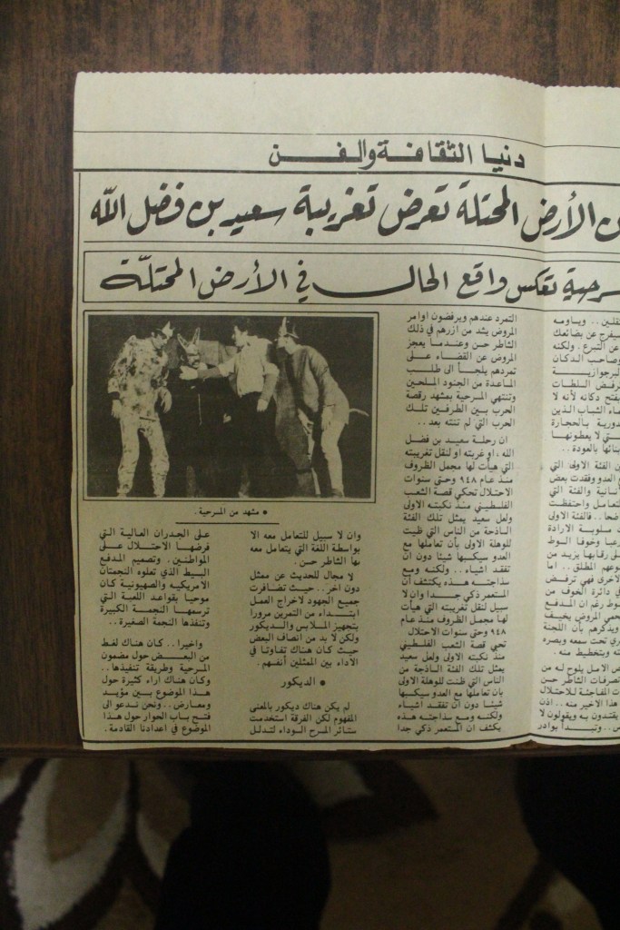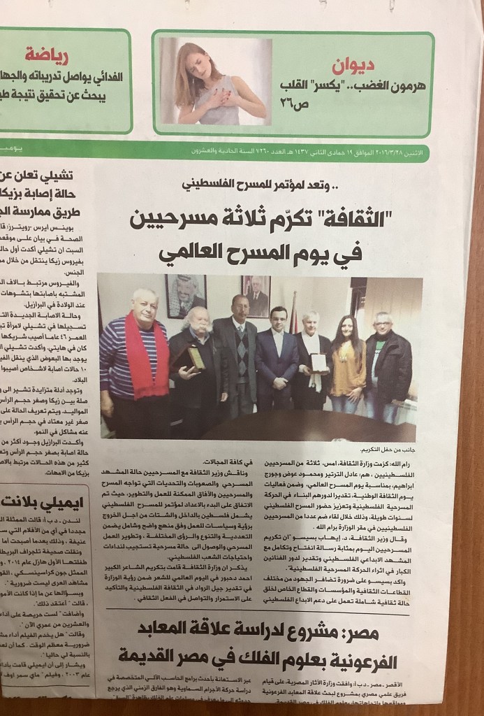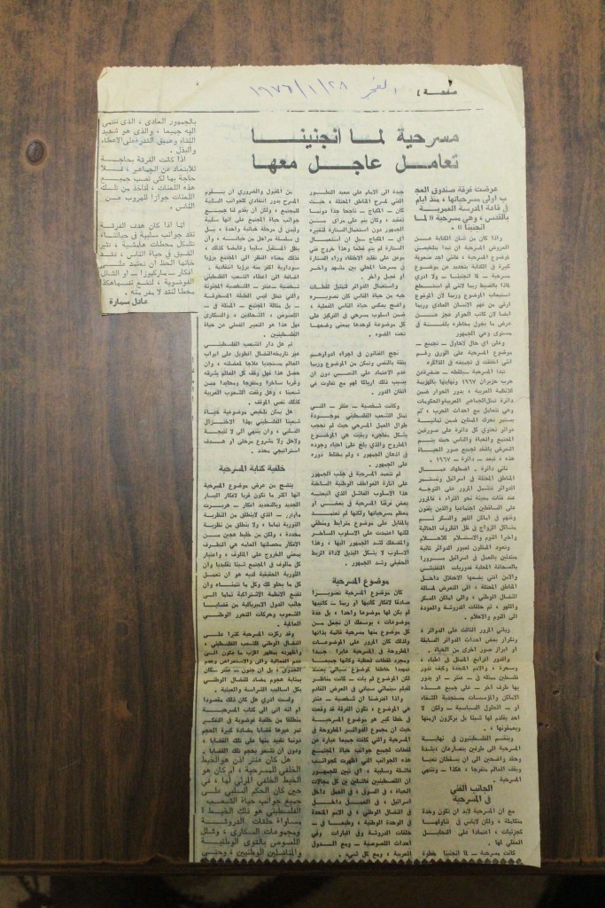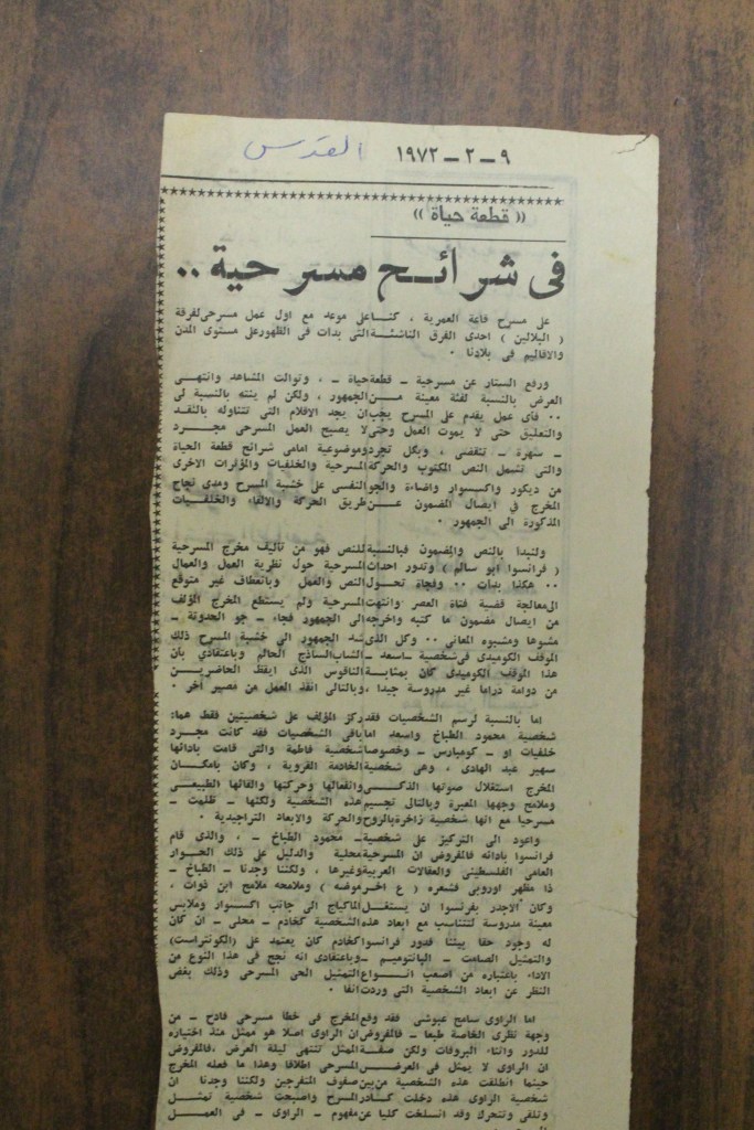 “نحو تأسيس مسرح قومي فلسطيني”، قصاصة من جريدة، 30 أيار 2017