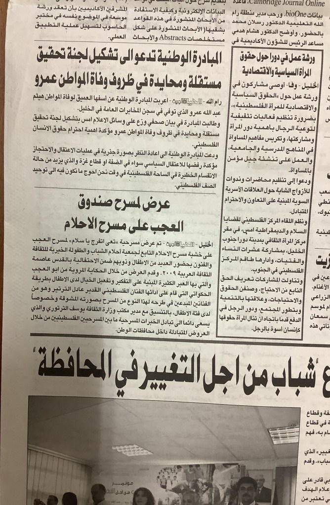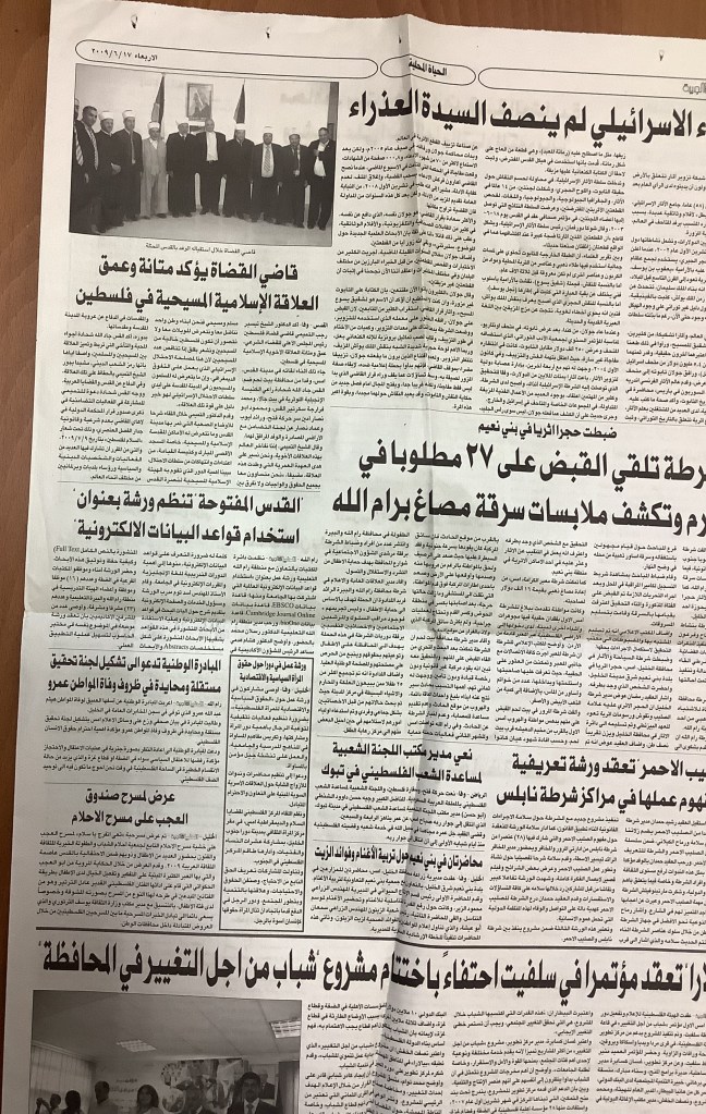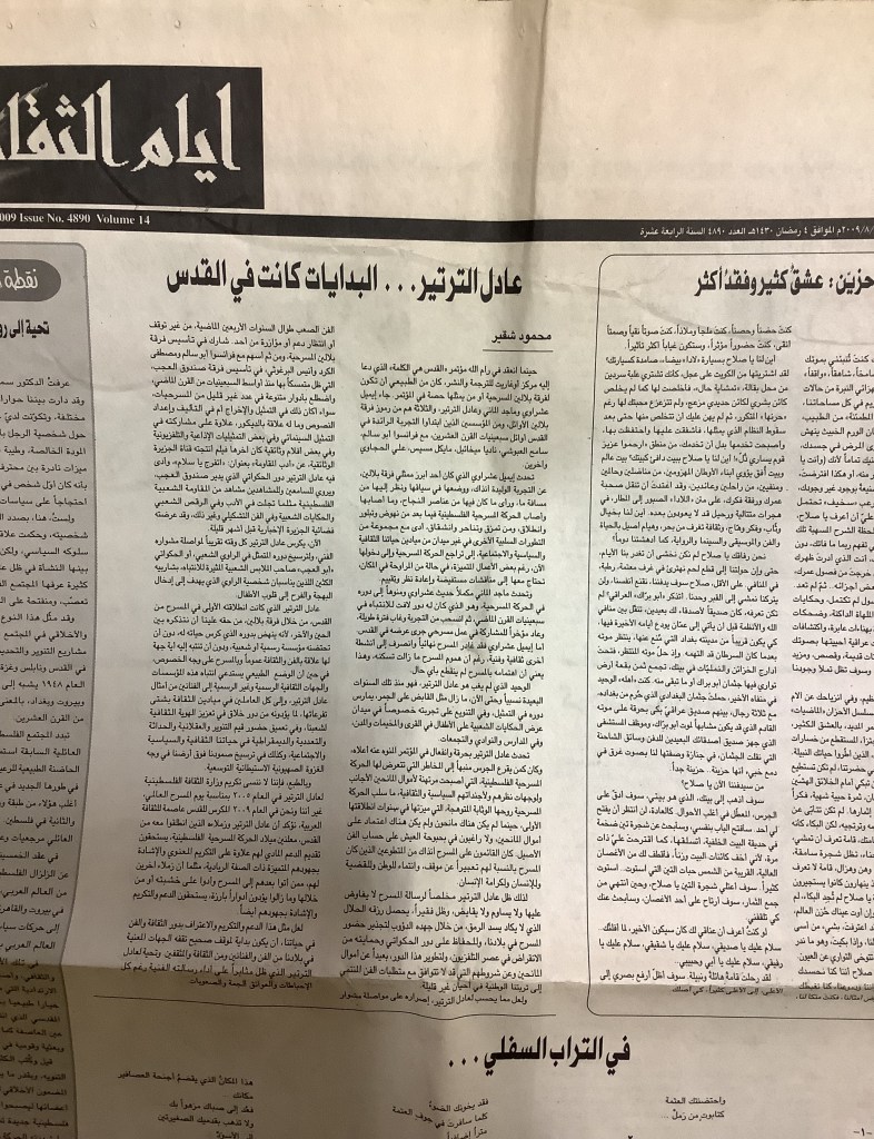 “عادل الترتير البدايات كانت في القدس”، قصاصة من جريدة، 25 آب 2009