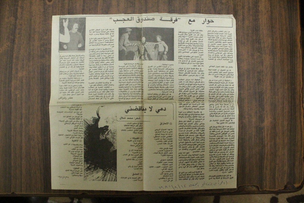 “حوار مع فرقة صندوق العجب”، قصاصة من جريدة، 14 آب 1981